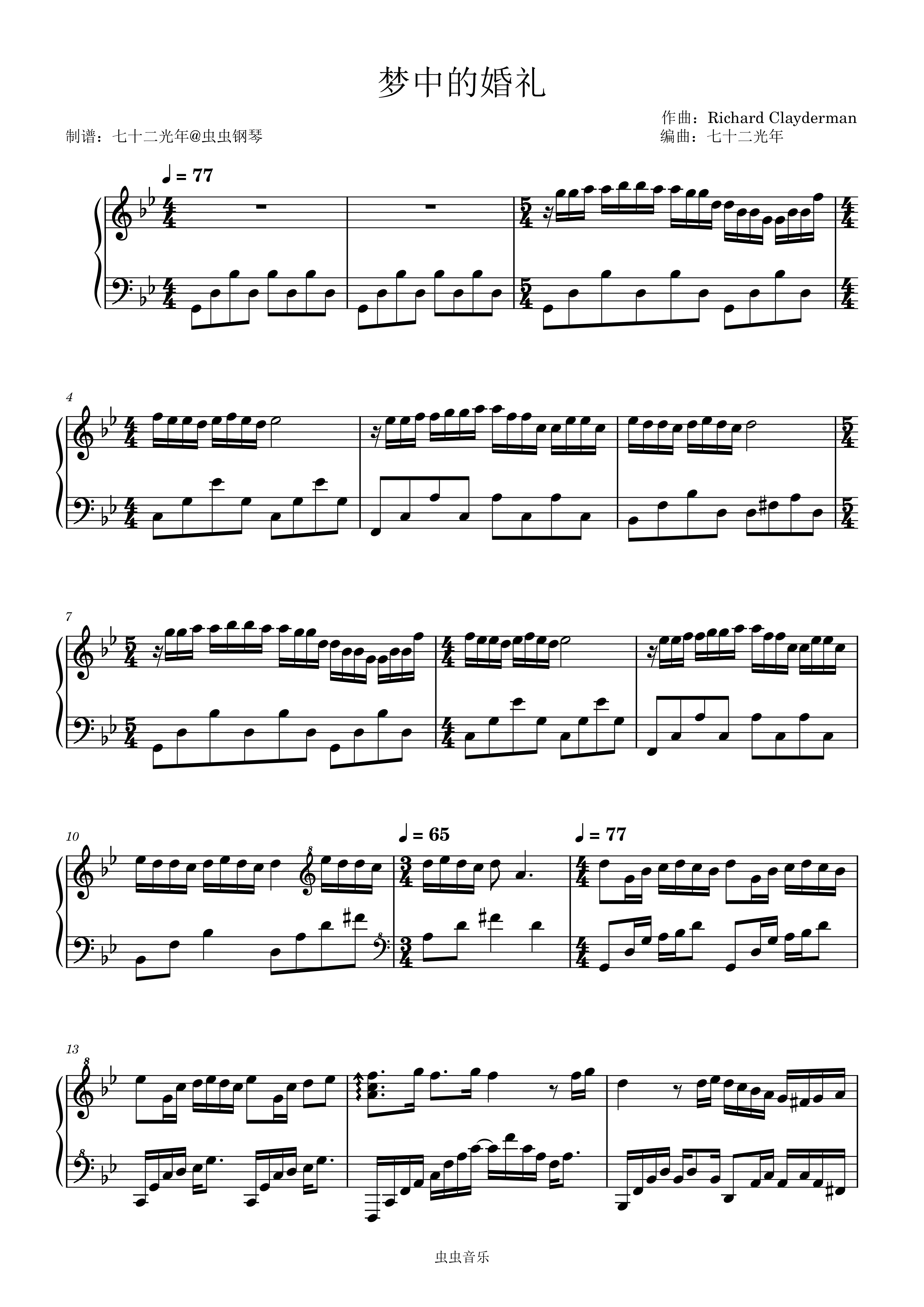 • 梦中的婚礼钢琴简谱 g调 数字双手