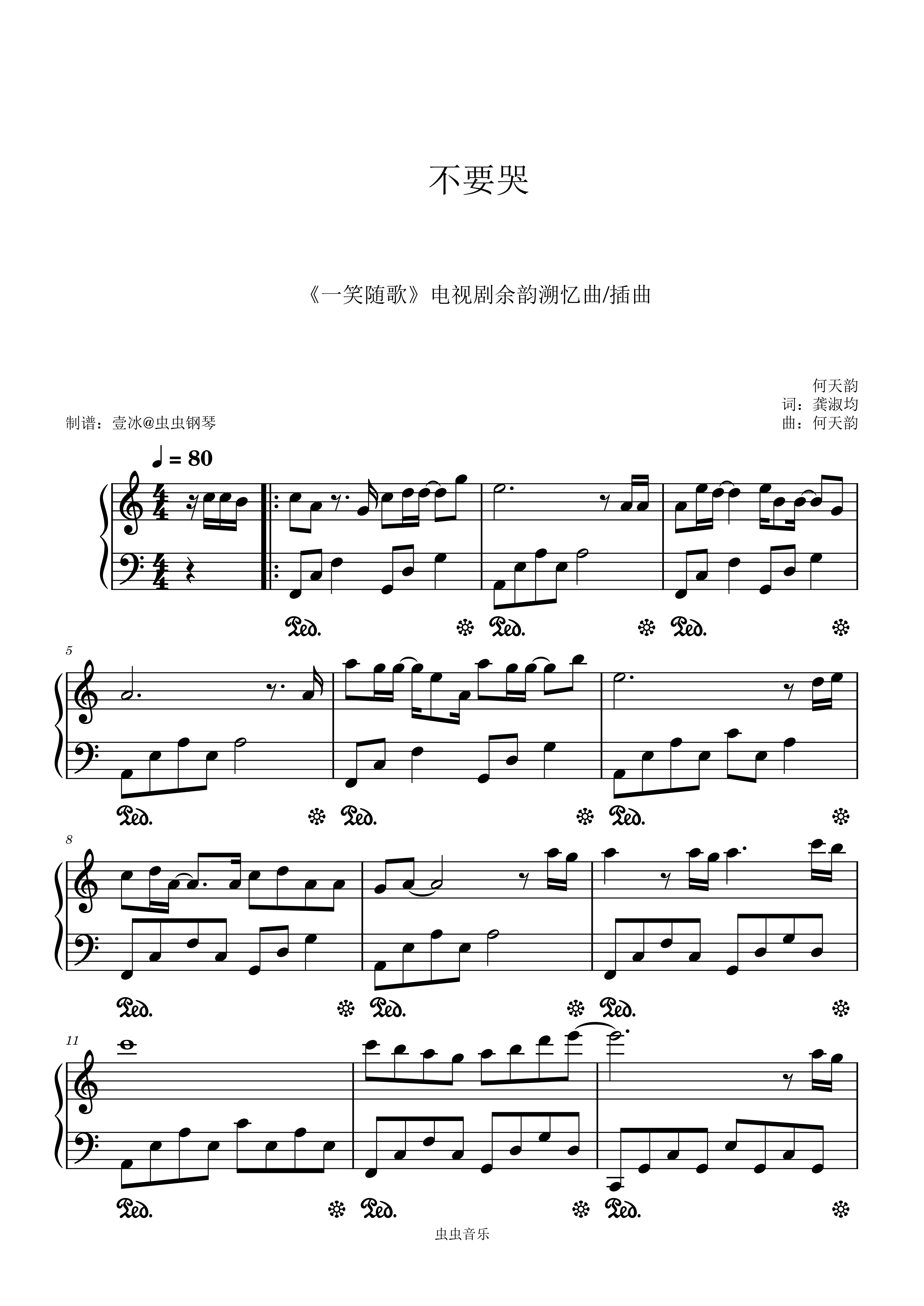 钢琴谱:不要哭 (《一笑随歌》电视剧余韵溯忆曲/插曲) - C调