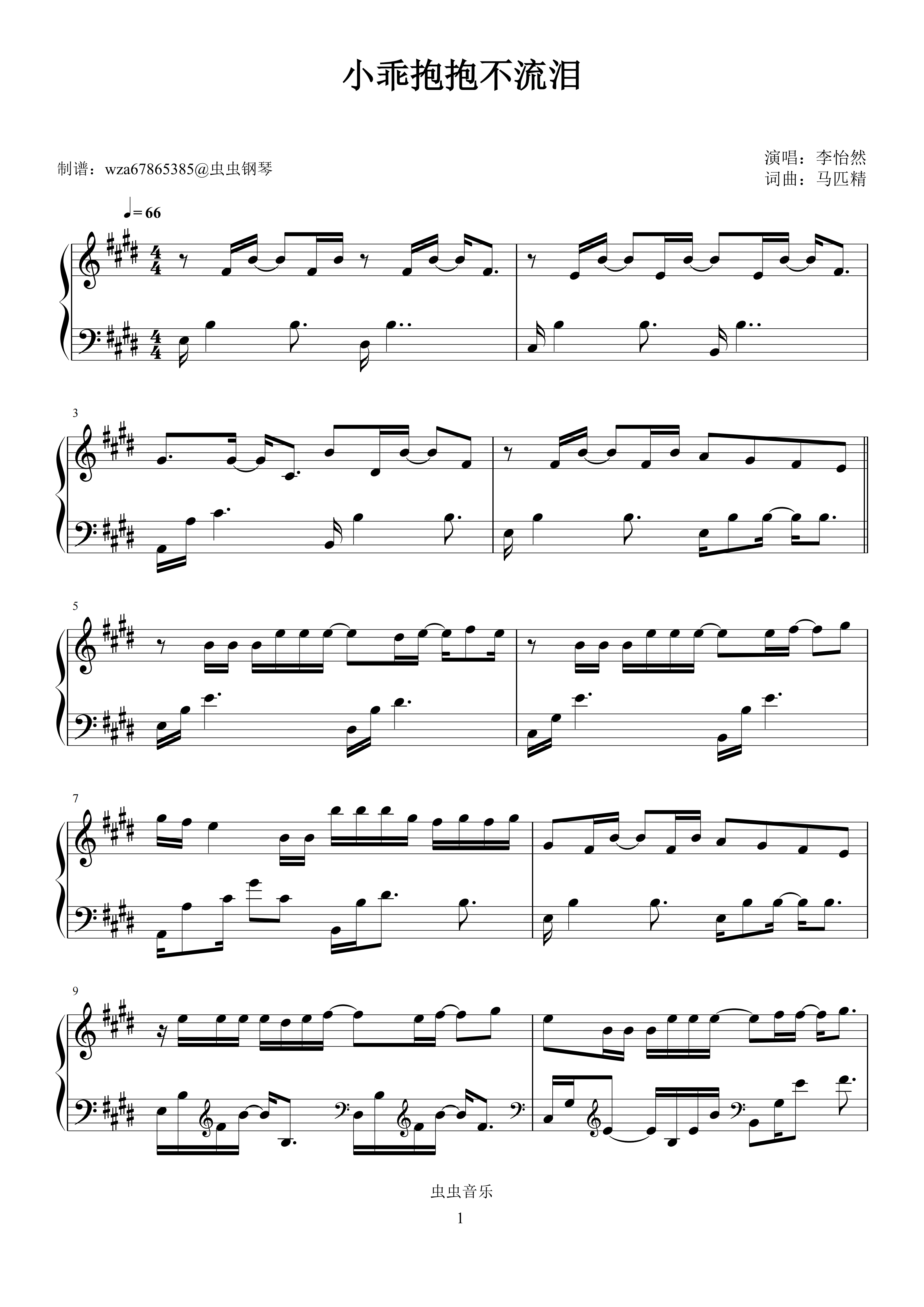 小乖 抱抱不流泪钢琴简谱 数字双手 马匹精
