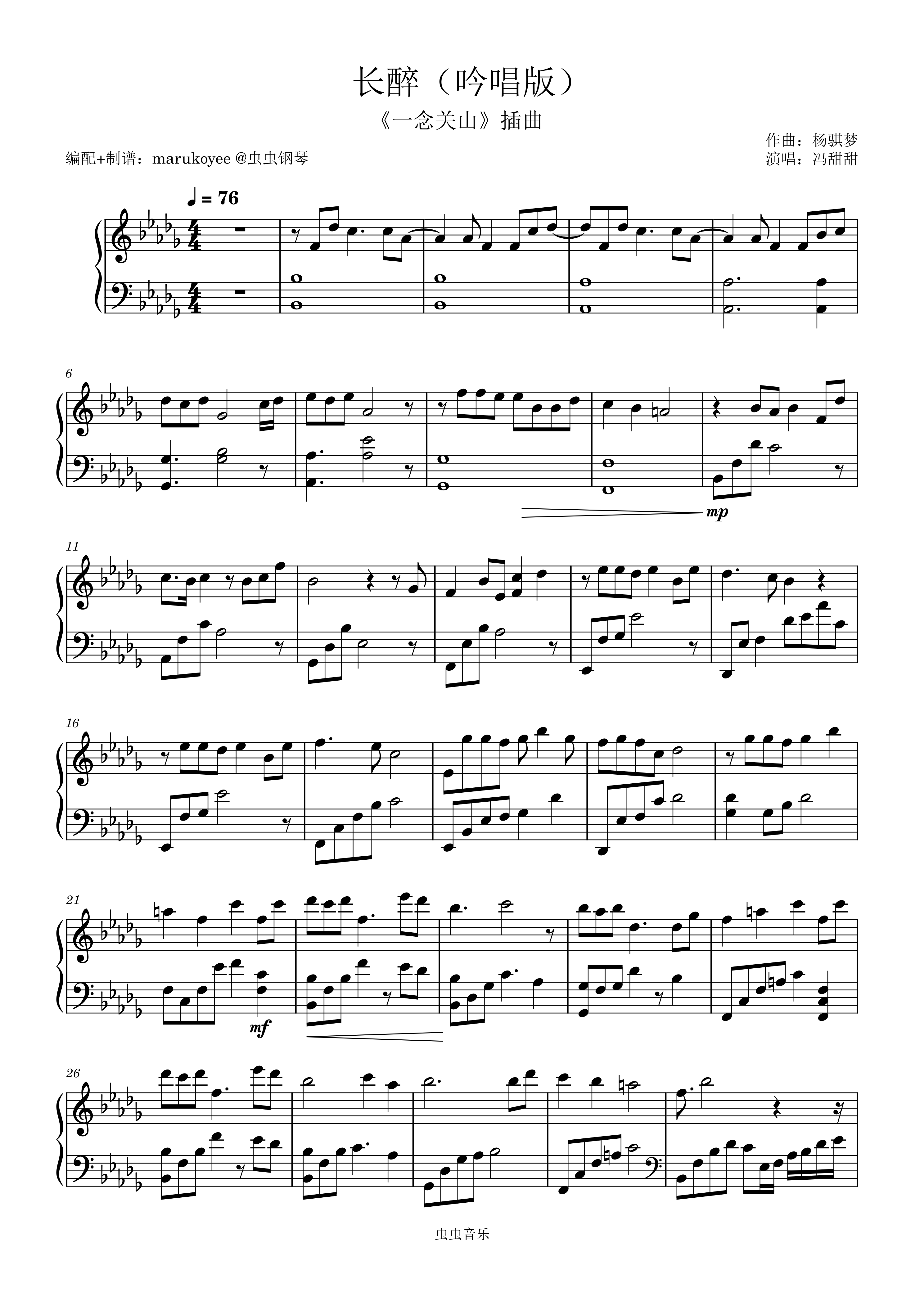 钢琴谱:【一念关山电视剧】长醉(吟唱版)- 原调温柔版