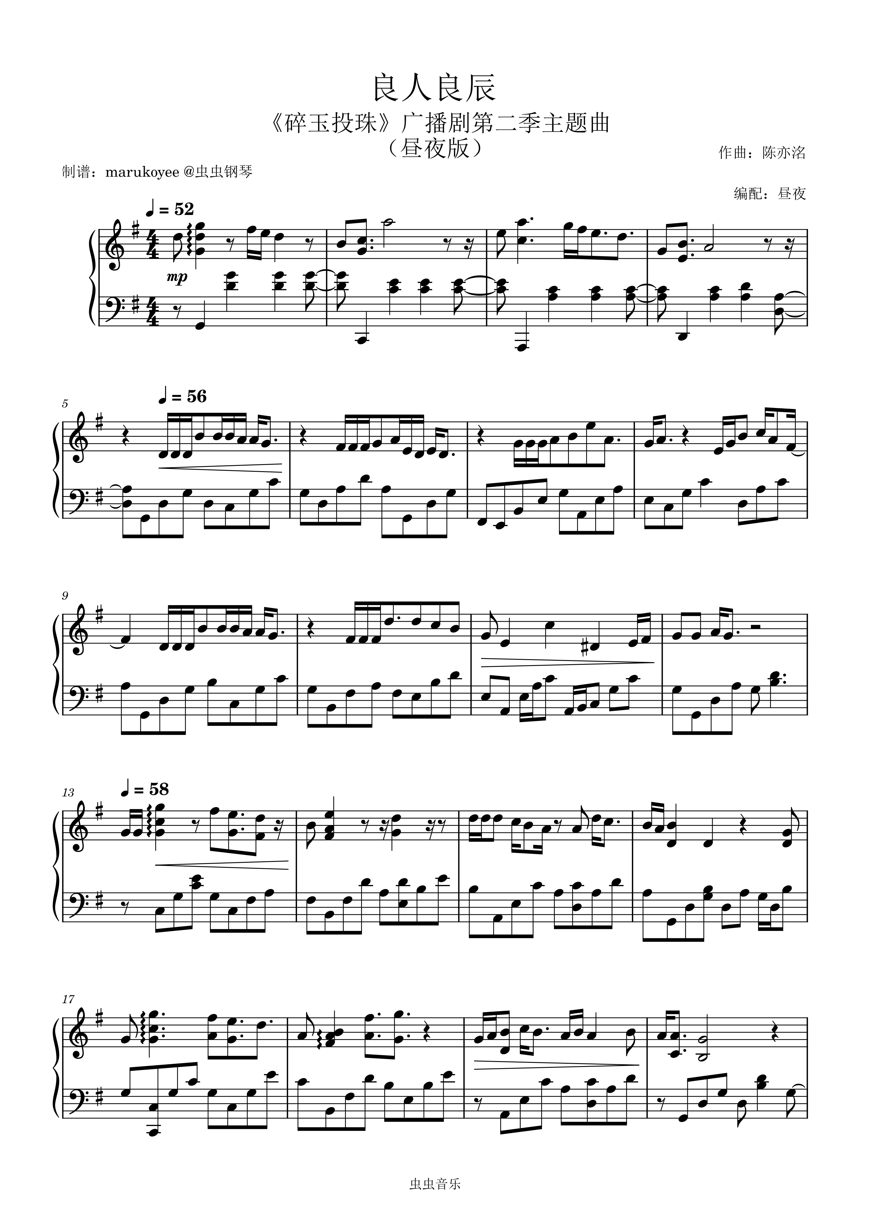 钢琴谱:【碎玉投珠广播剧】良人良辰(昼夜版)- 原调G