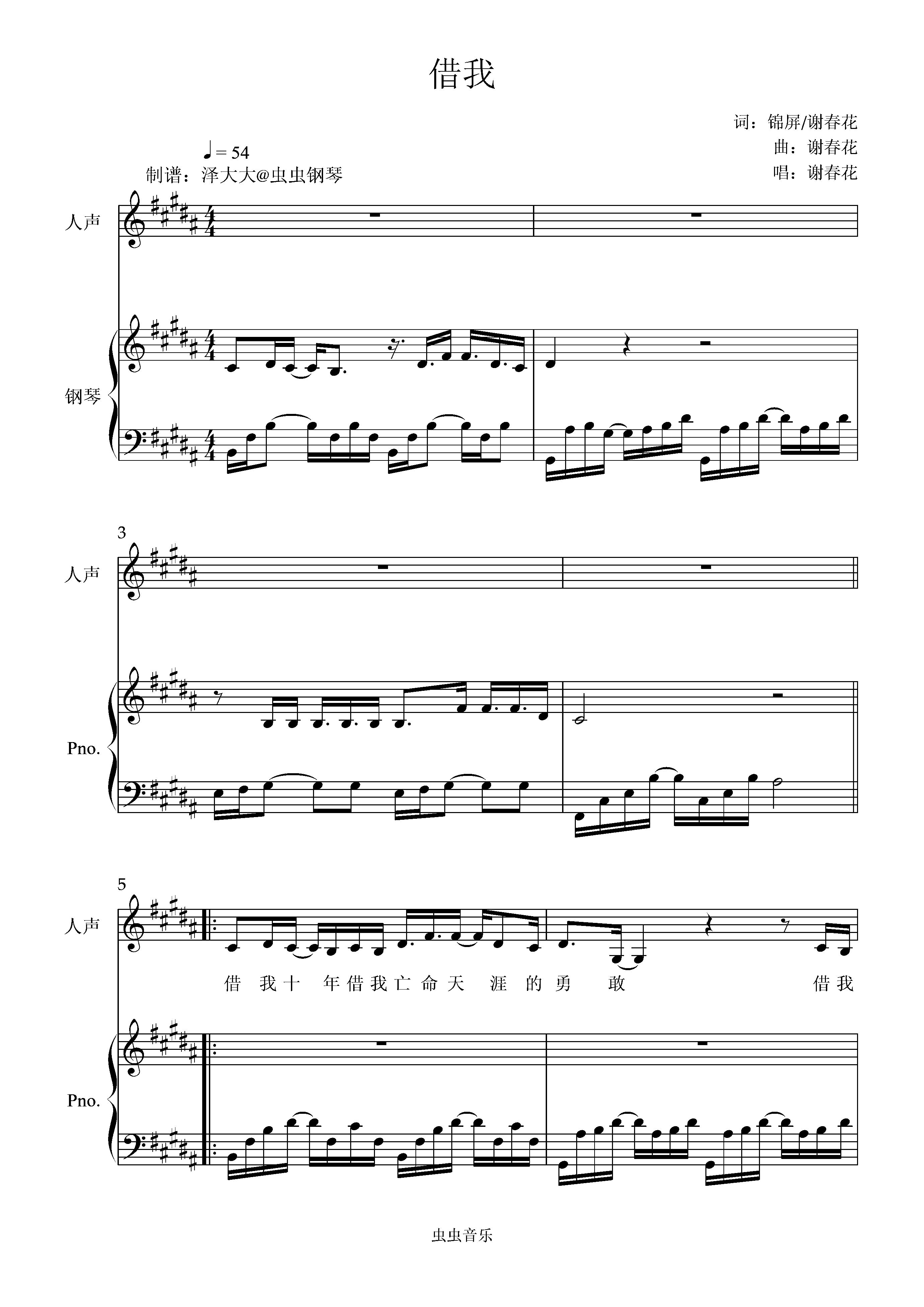 钢琴谱:借我【原版弹唱附词】泽大大 谢春花