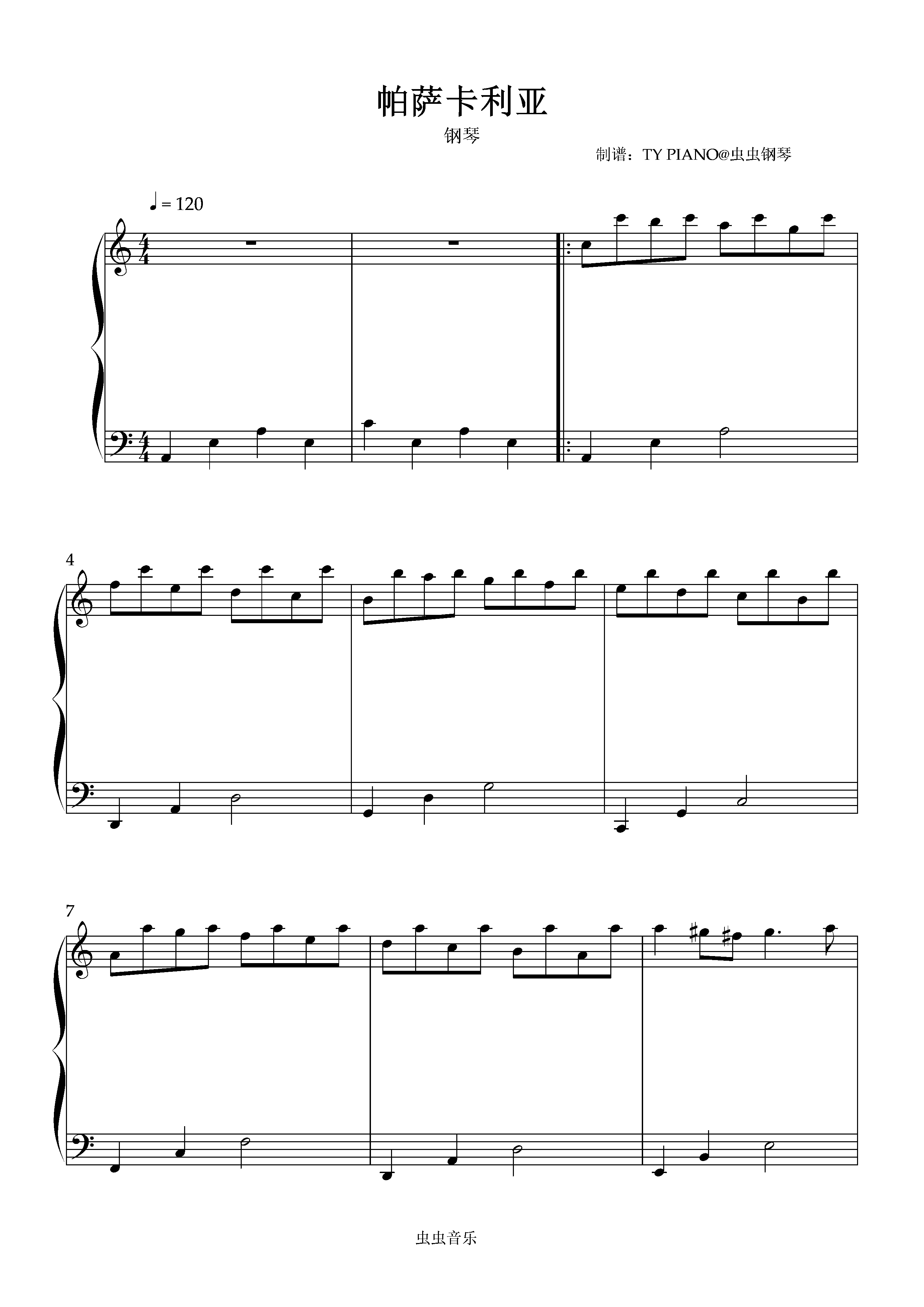 • 帕萨卡利亚钢琴简谱 C调 数字双手