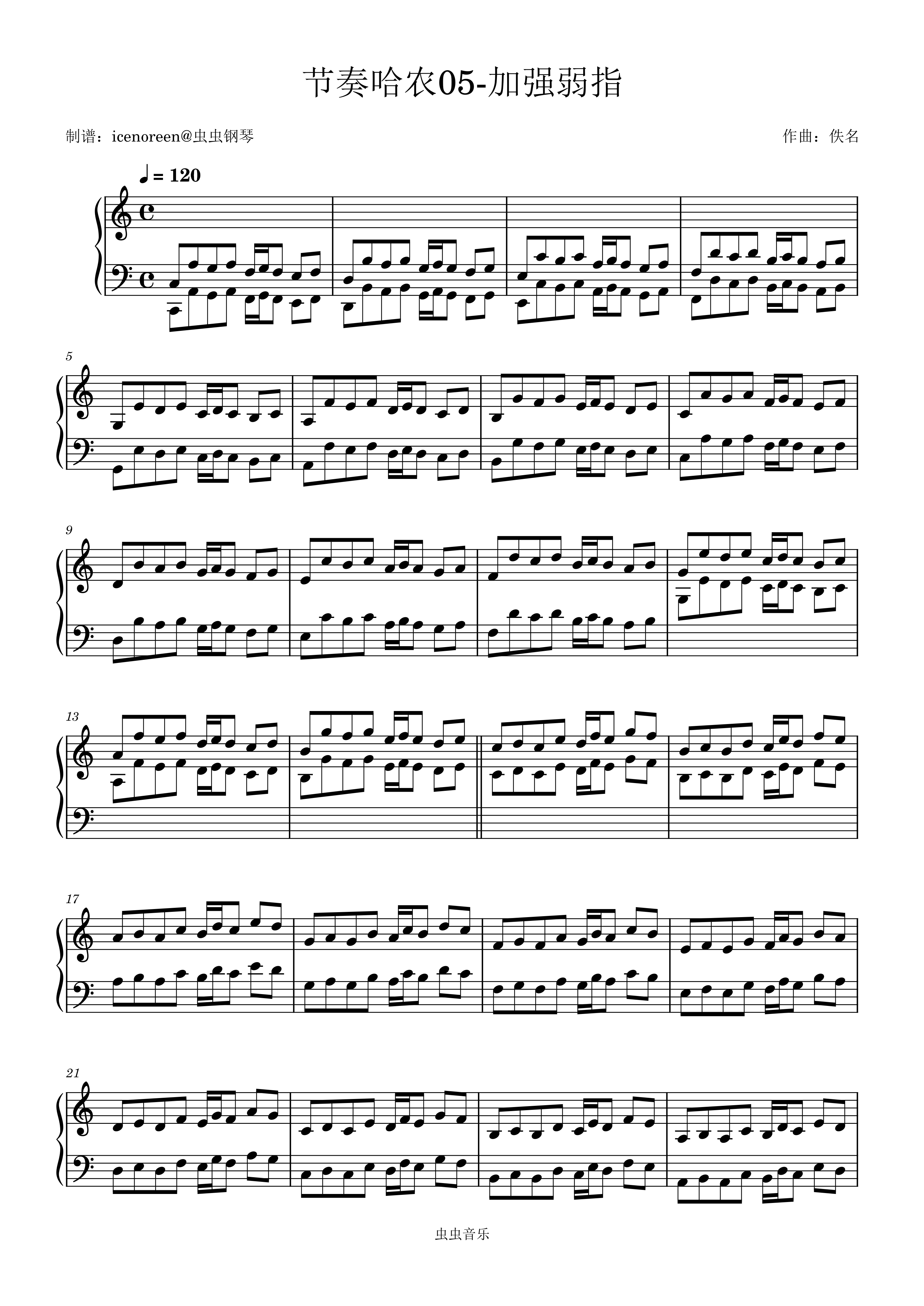 • 弱指基本练习钢琴简谱 C调 数字双手