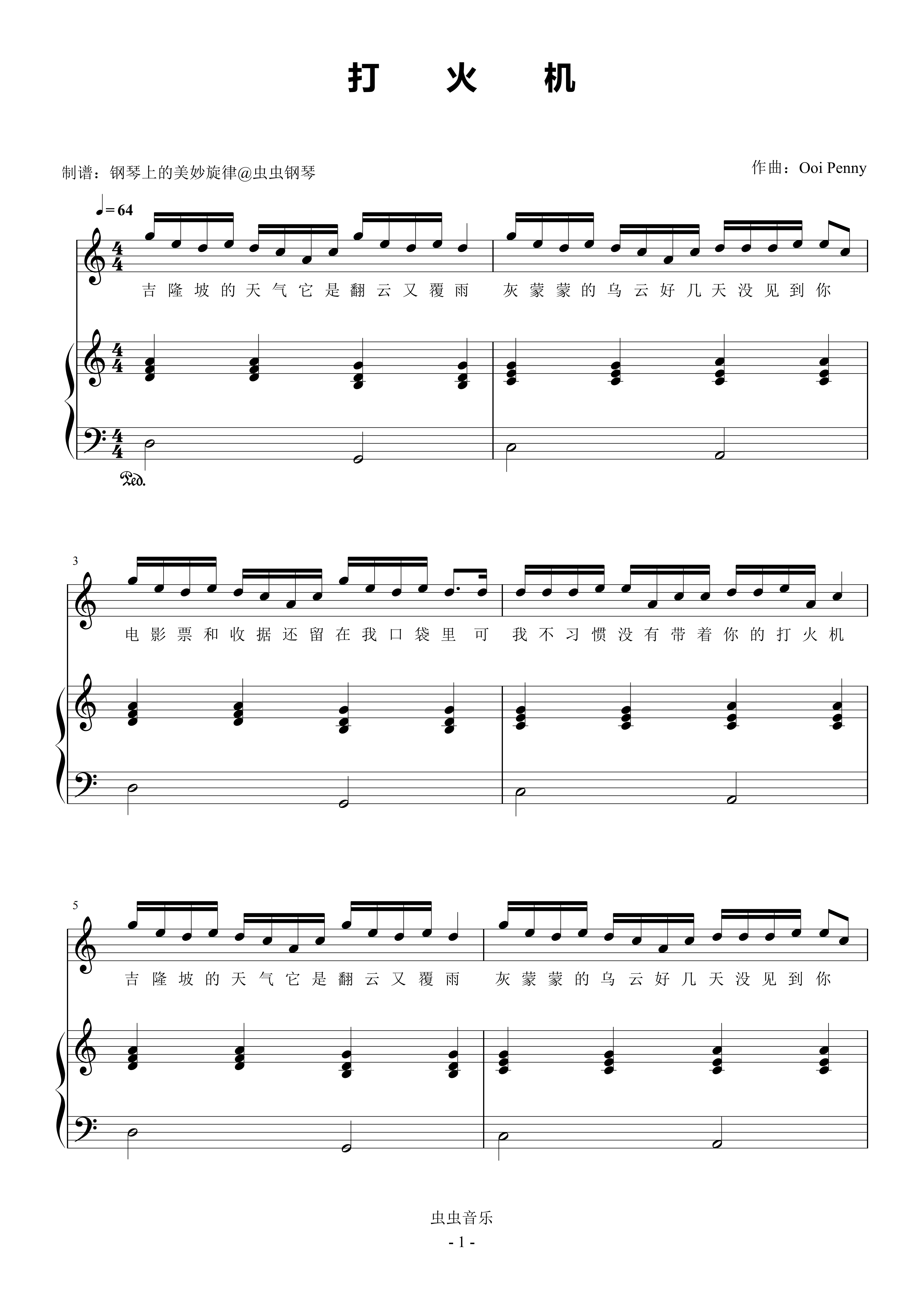 钢琴谱:打火机 C调简易钢琴弹唱伴奏 带歌词