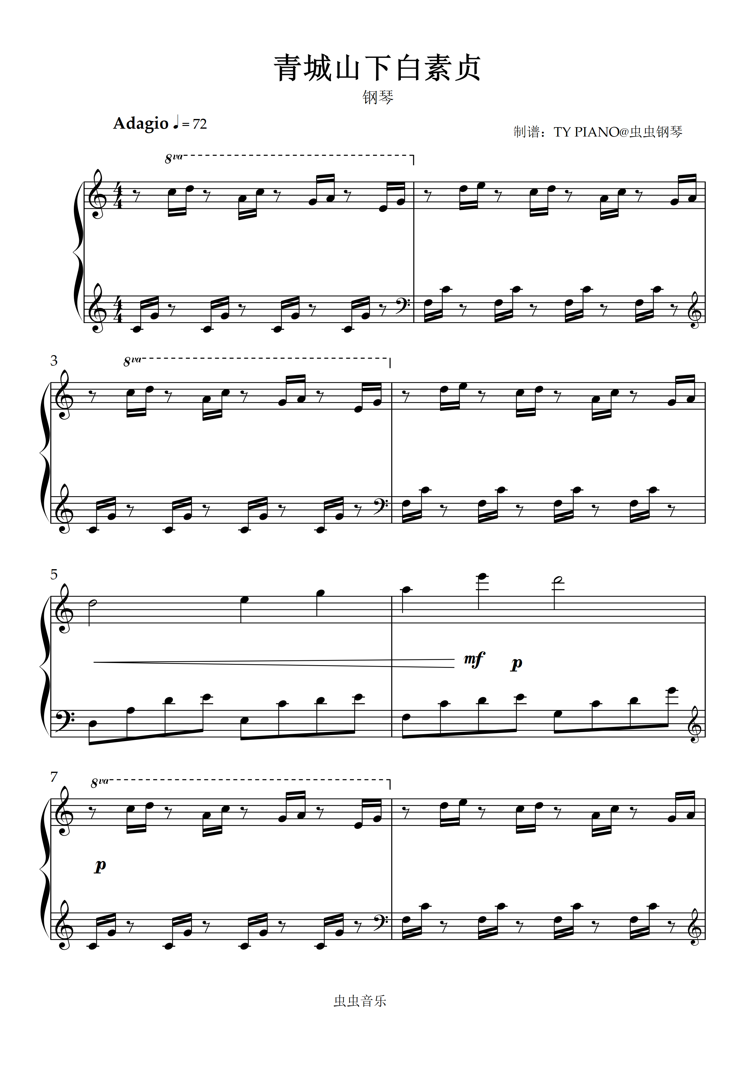• 青城山下白素贞钢琴简谱 C调 数字双手