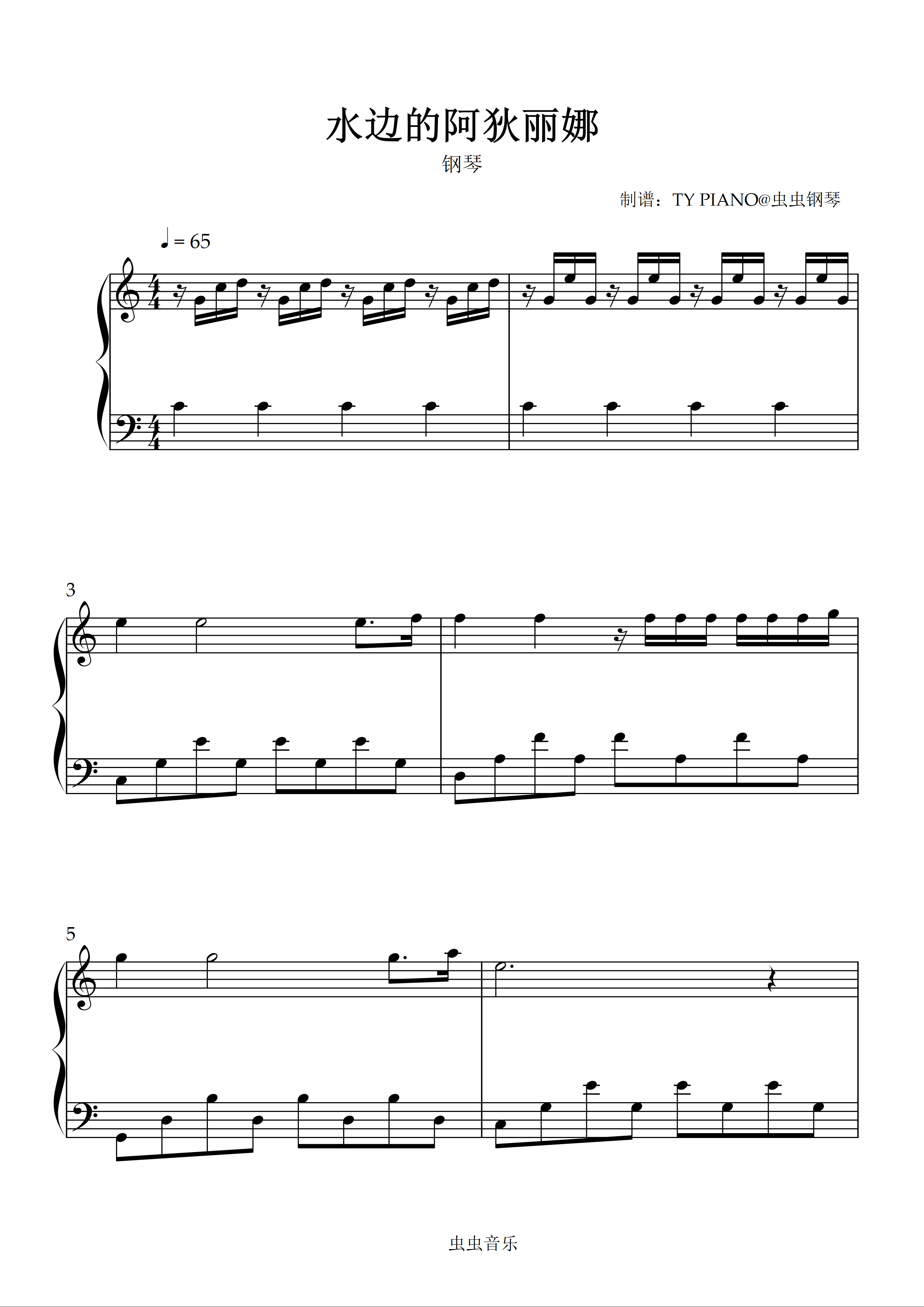 • 水边的阿狄丽娜钢琴简谱 C调 数字双手