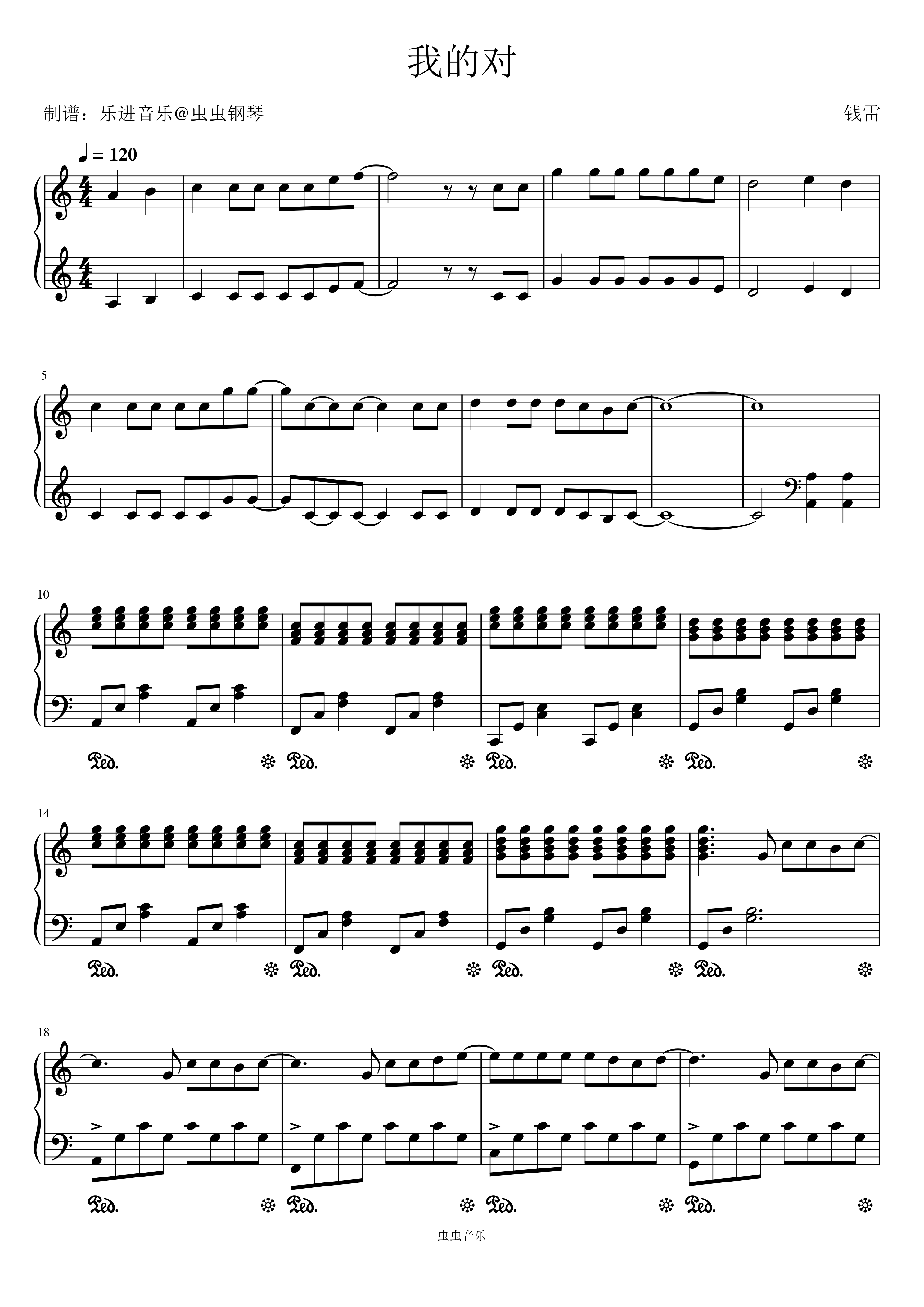• 我爱你中国钢琴简谱 C调 数字双手 汪峰