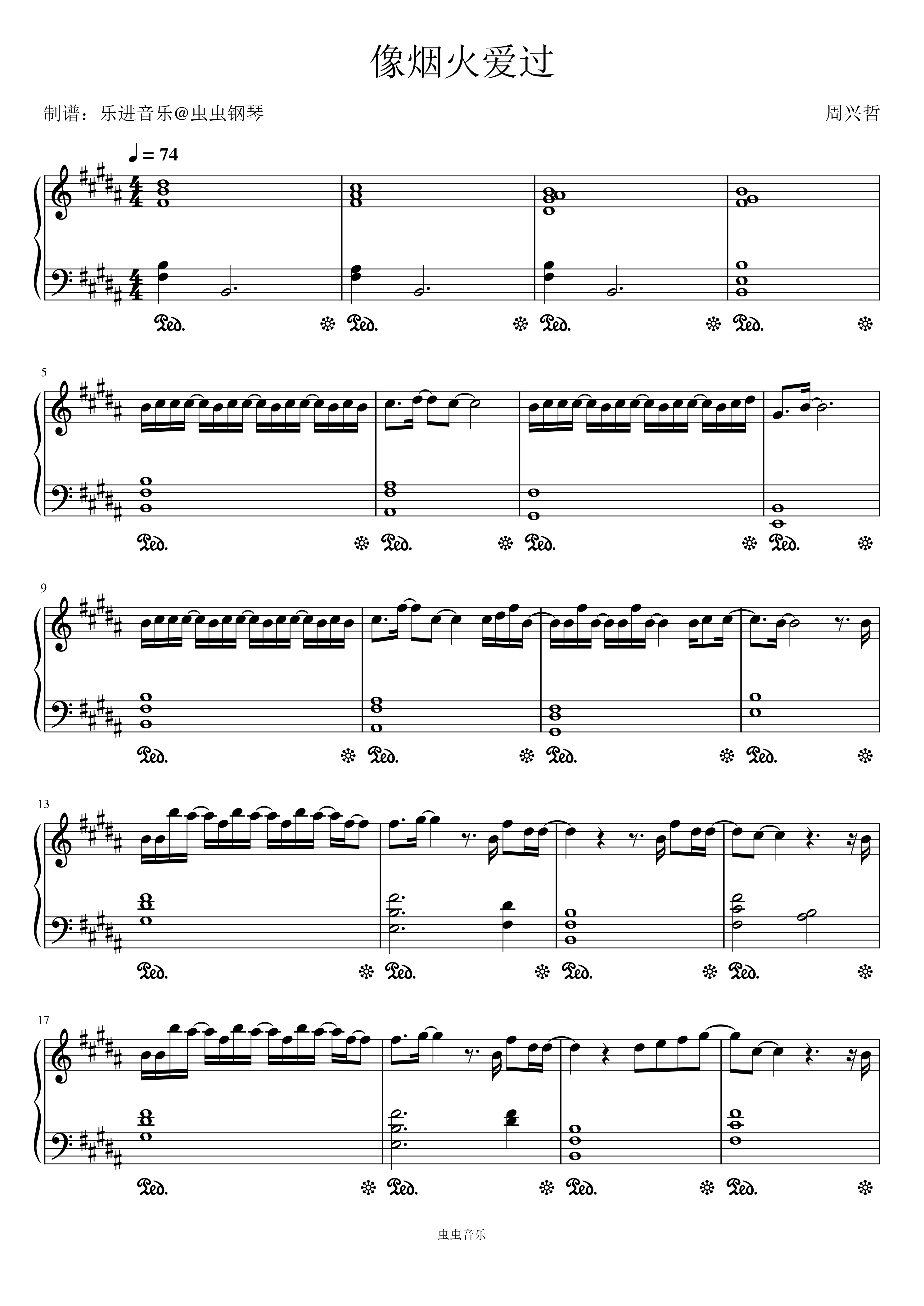 像烟火爱过钢琴简谱 数字双手 吴易纬