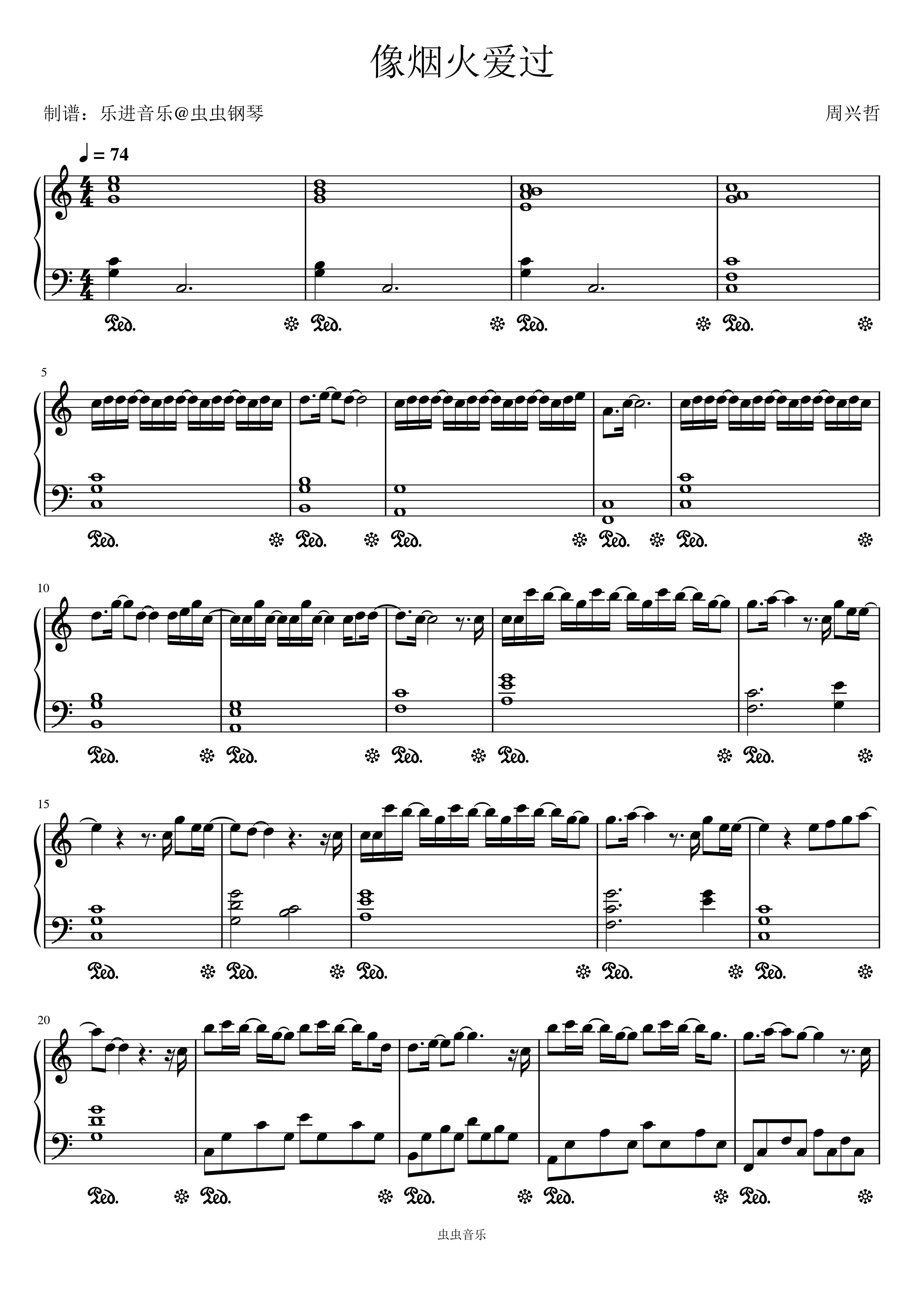• 错过的烟火钢琴简谱 C调 数字双手 方文山