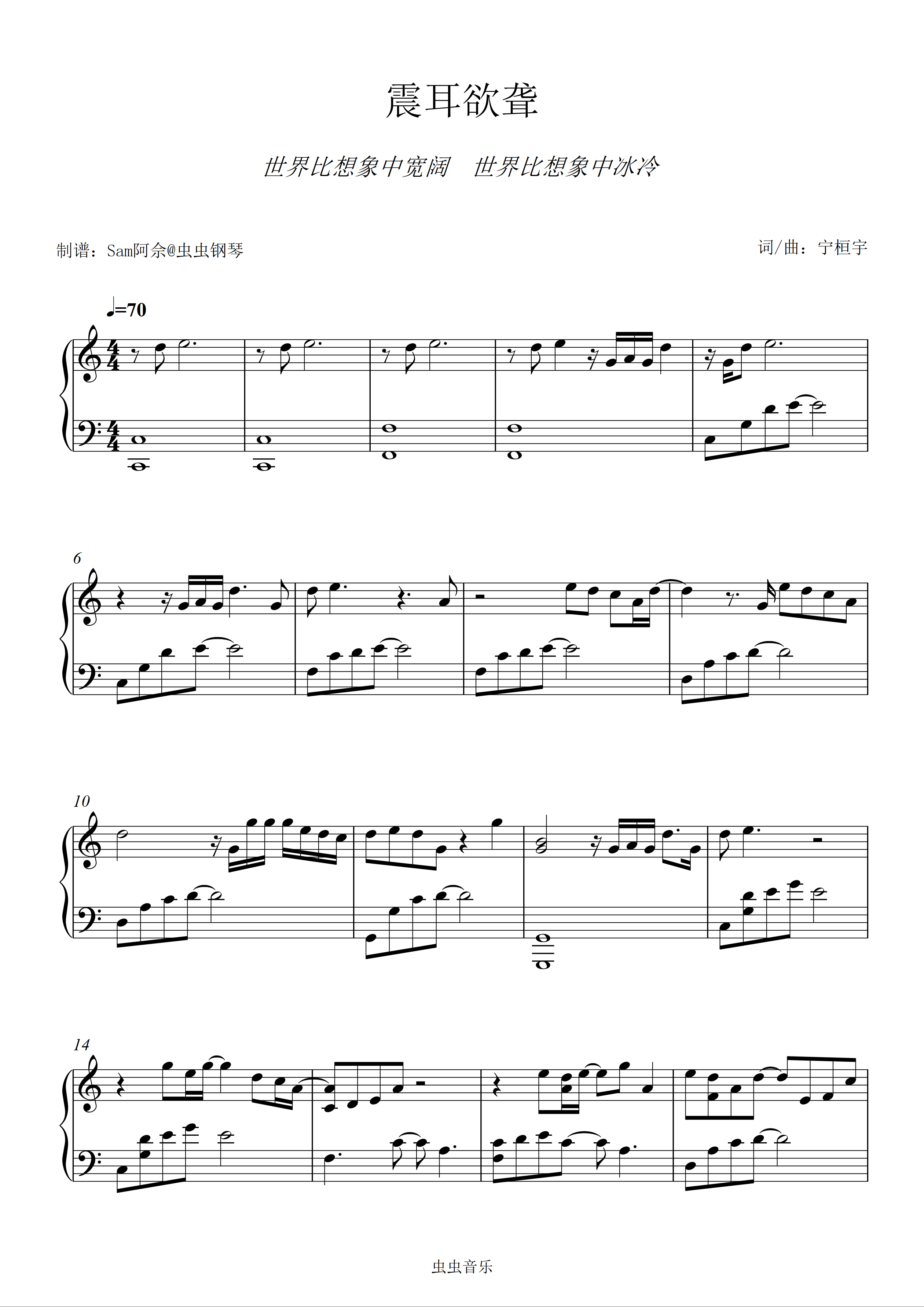 钢琴谱:C调《震耳欲聋》檀健次