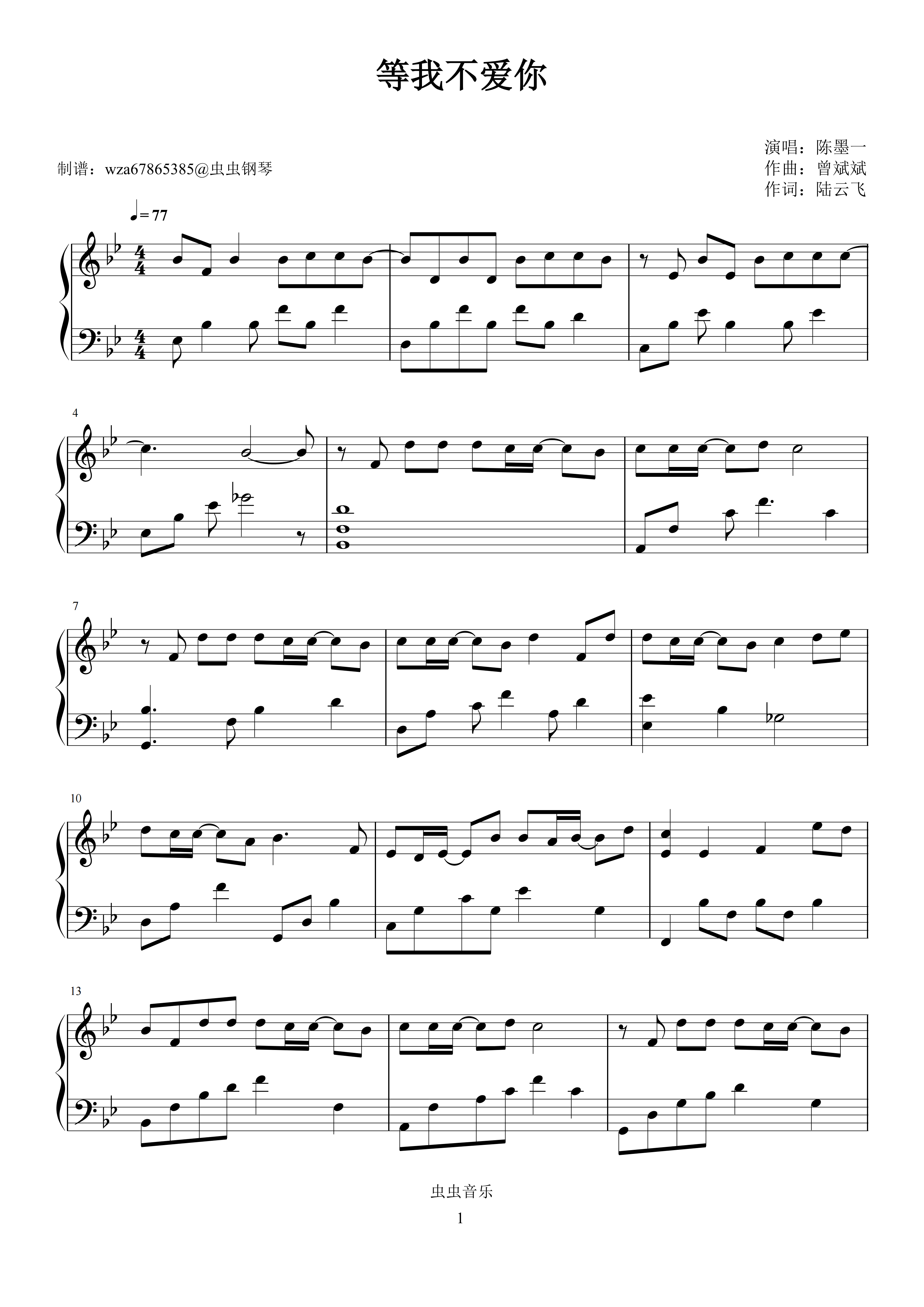 • 我爱你中国钢琴简谱 C调 数字双手 汪峰