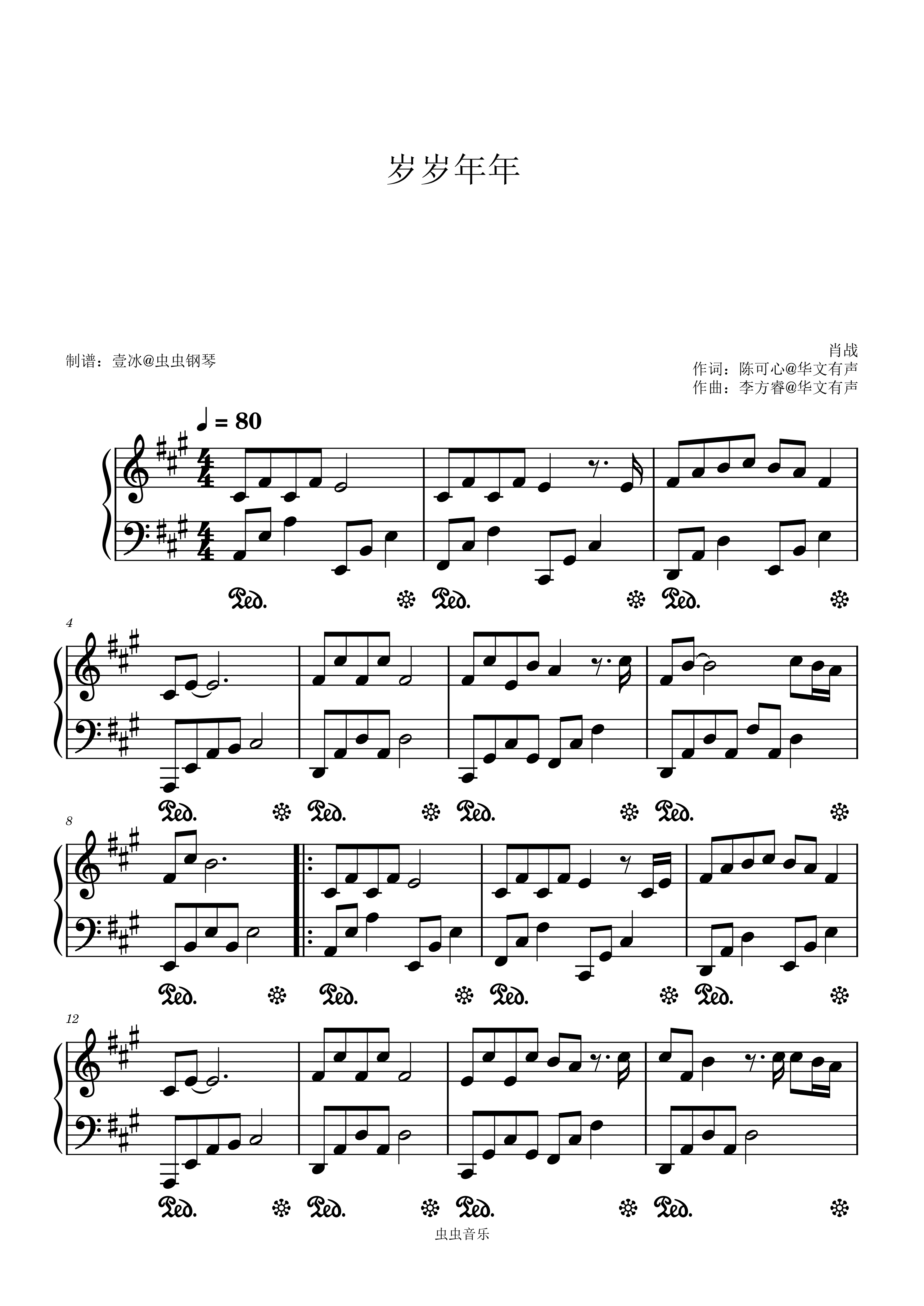 • 岁岁年年钢琴简谱 Eb调 数字双手 张莫寒