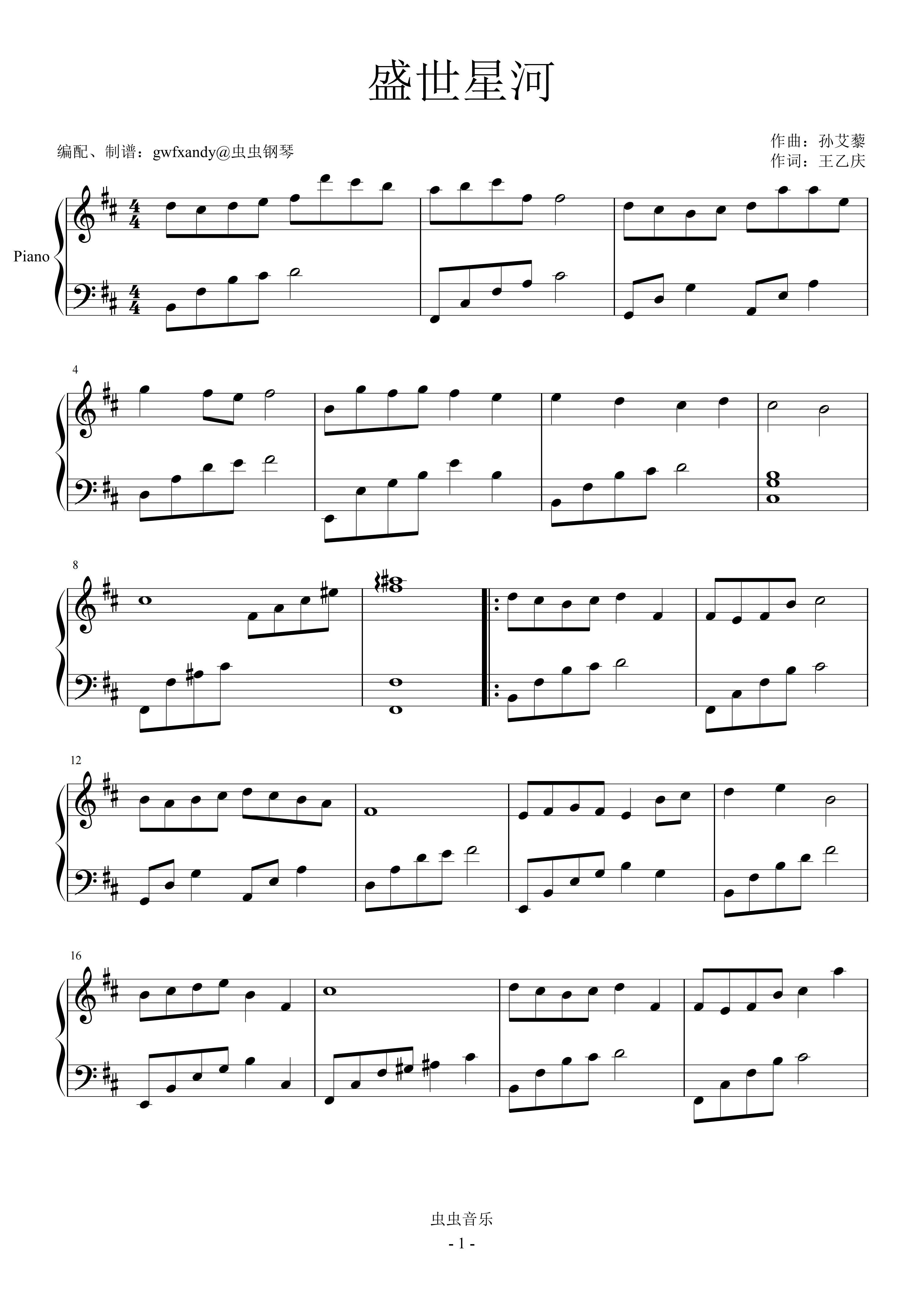• 星河万里钢琴简谱 C调 数字双手 景尧