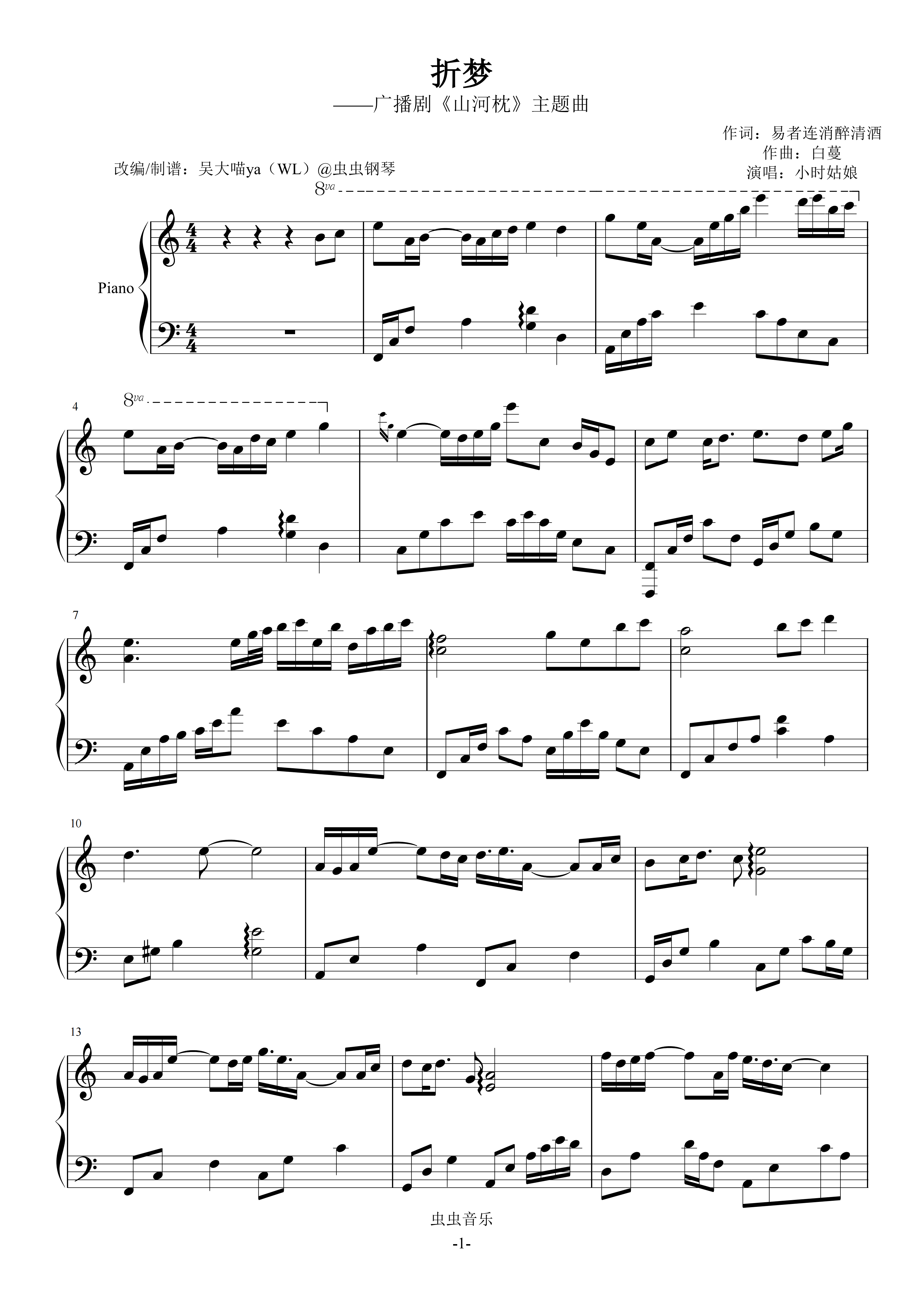 钢琴谱:折梦C调-广播剧《山河枕》主题曲