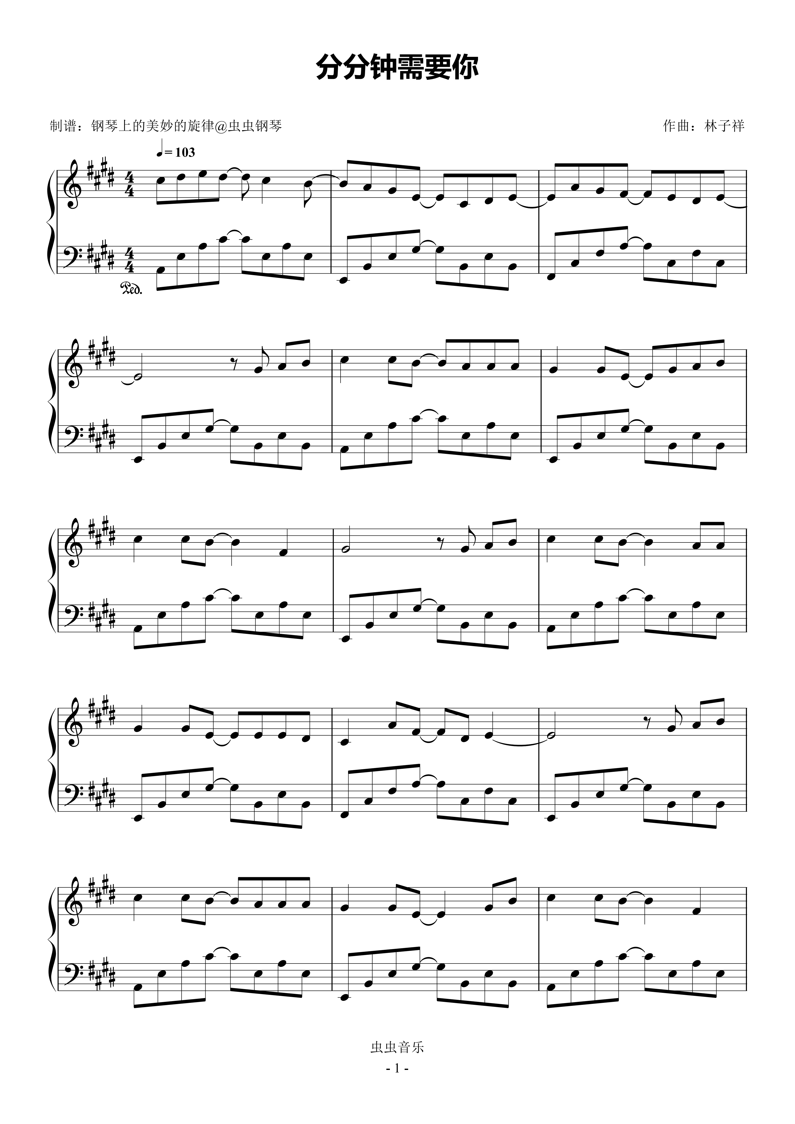 钢琴谱:分分钟需要你 原调简易版 林子祥 流行经典