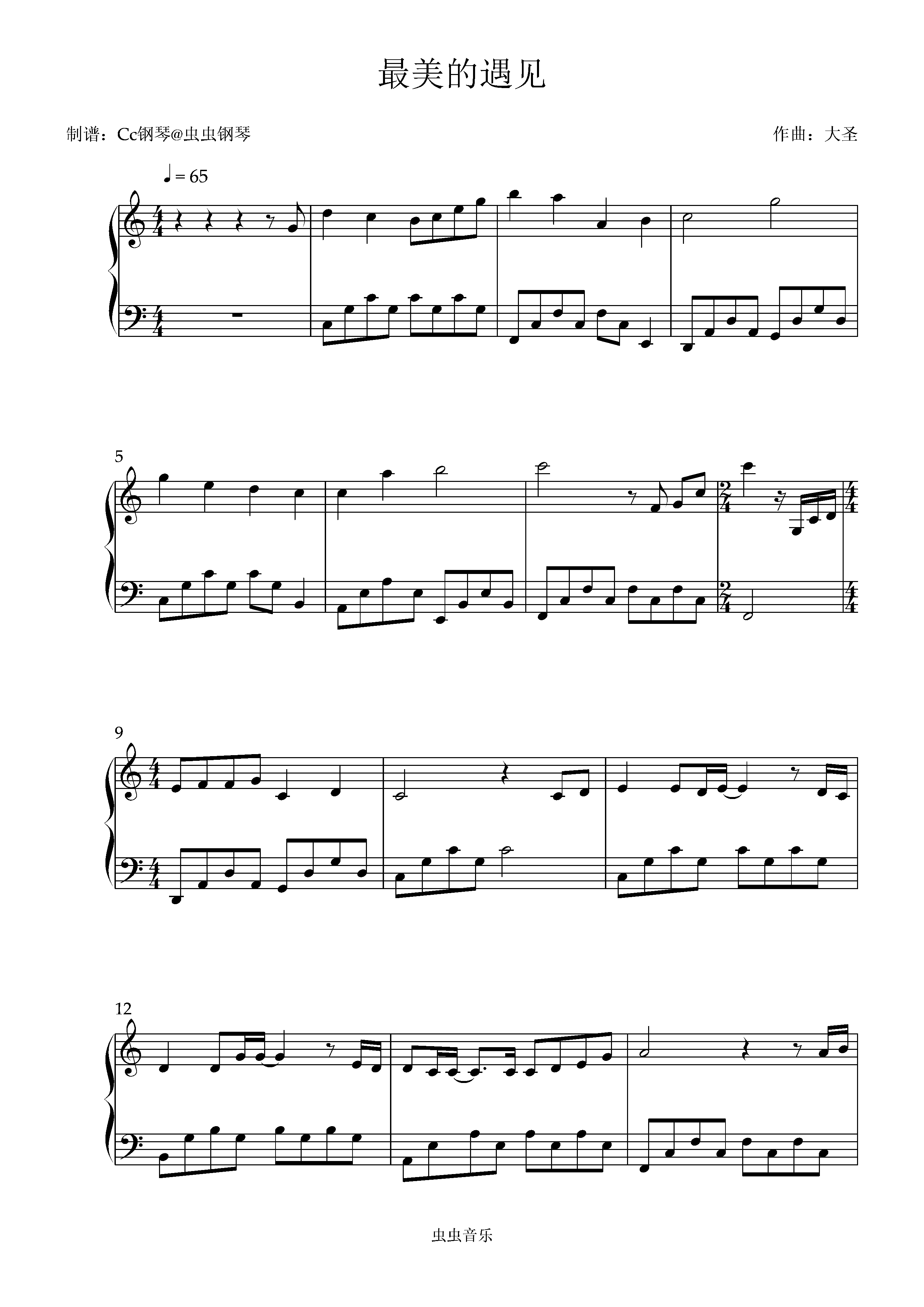 • 是什么让我遇见这样的你钢琴简谱 C#调 数字双手 白安