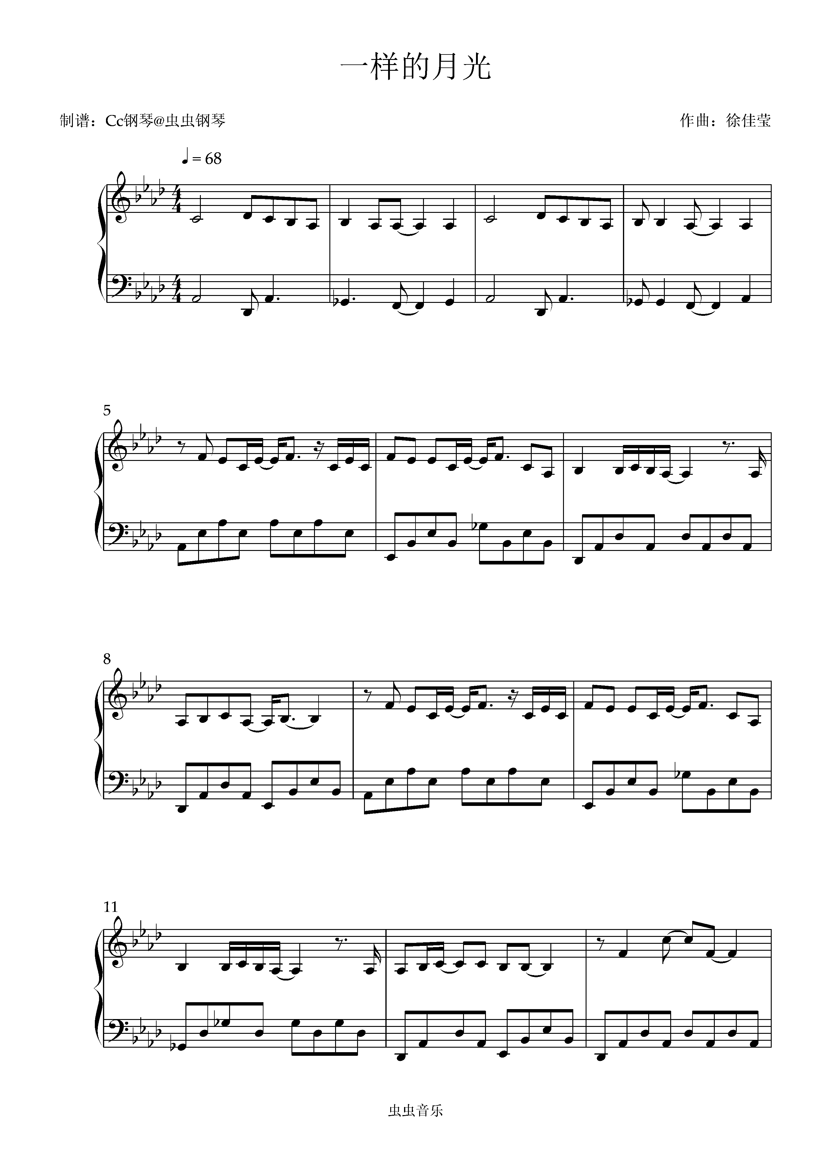 • 一样的月光钢琴简谱 Ab调 数字双手 徐佳莹