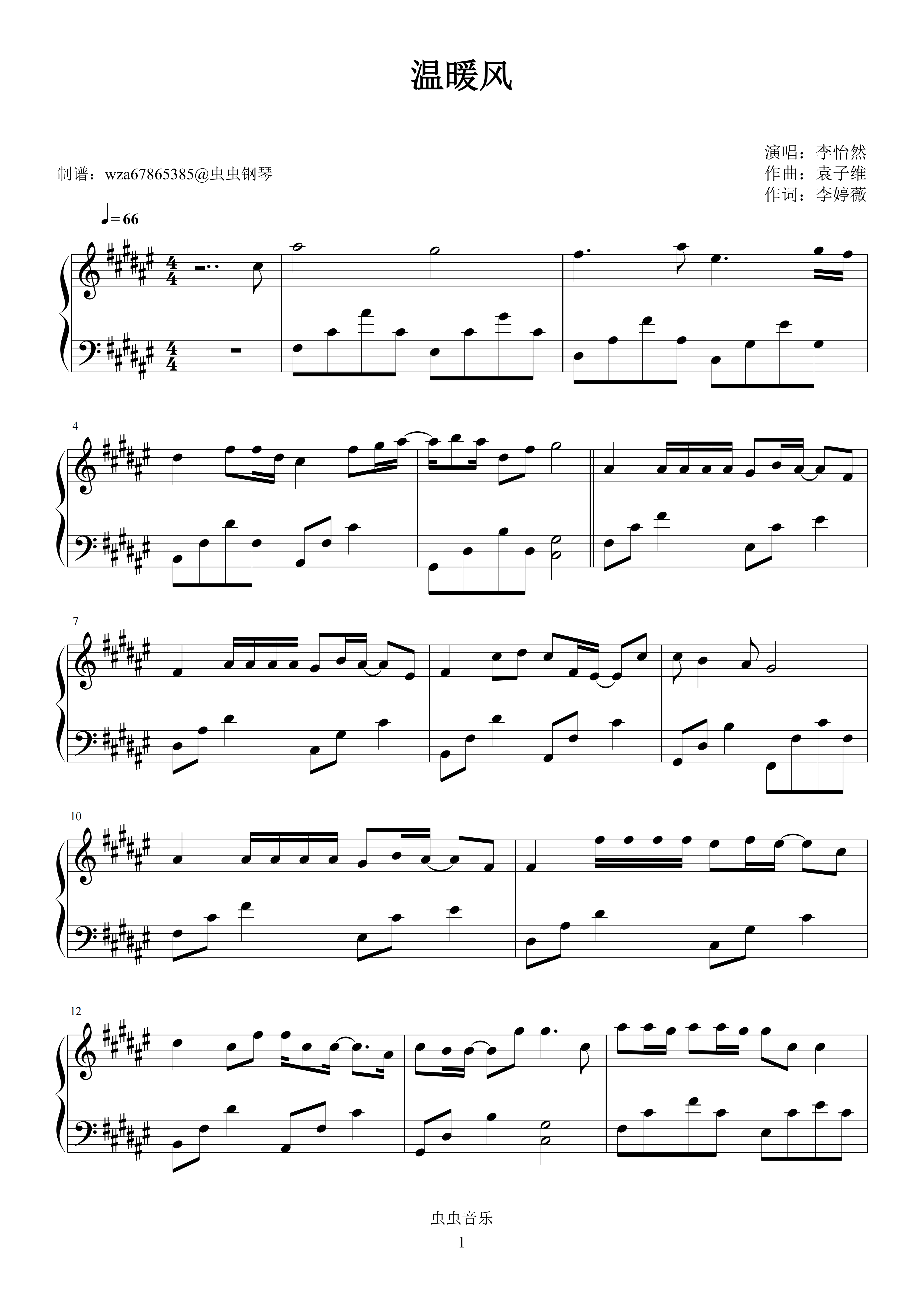 • 去温暖的地方钢琴简谱 E调 数字双手 马梓皓