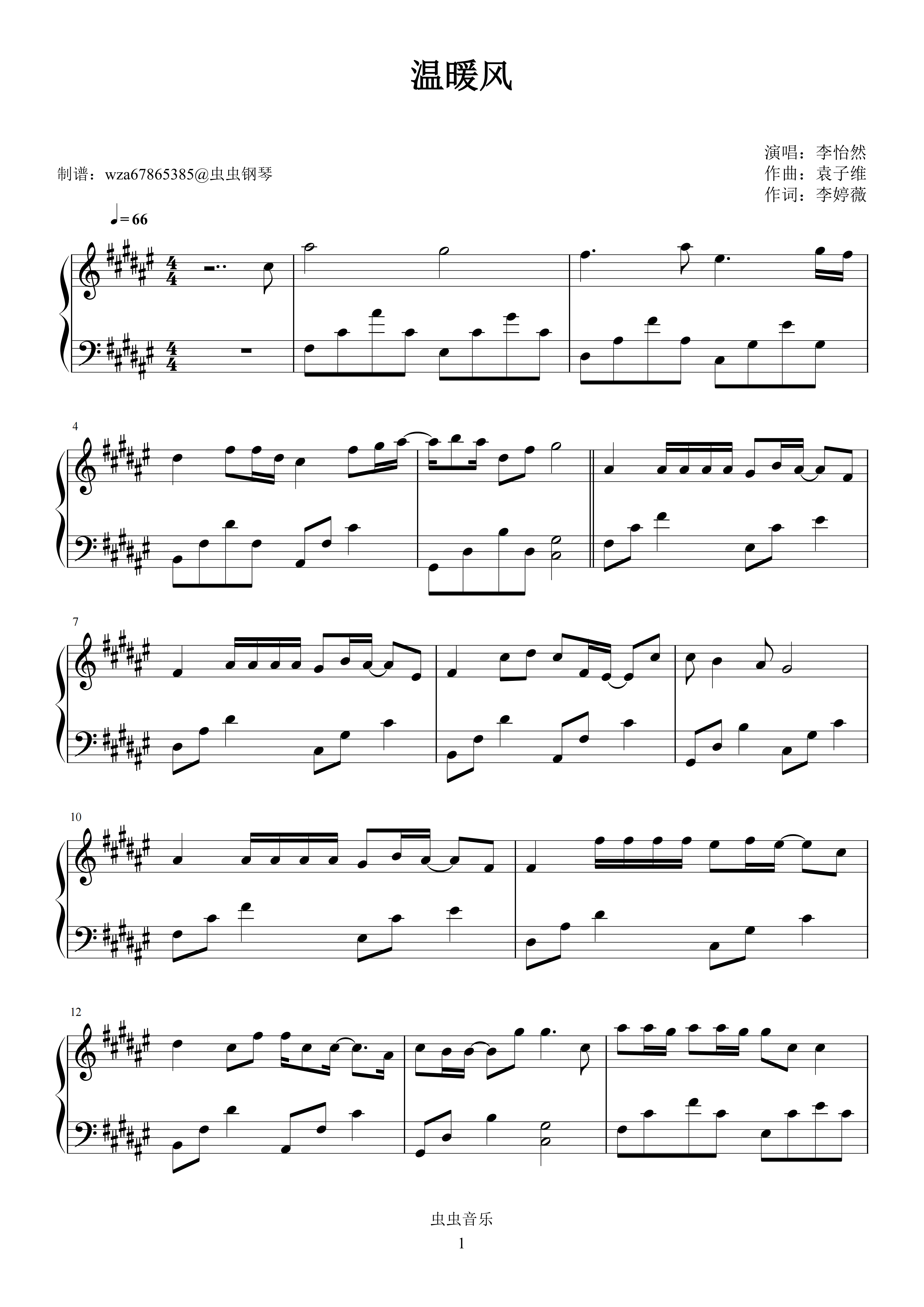 钢琴谱:温暖风
