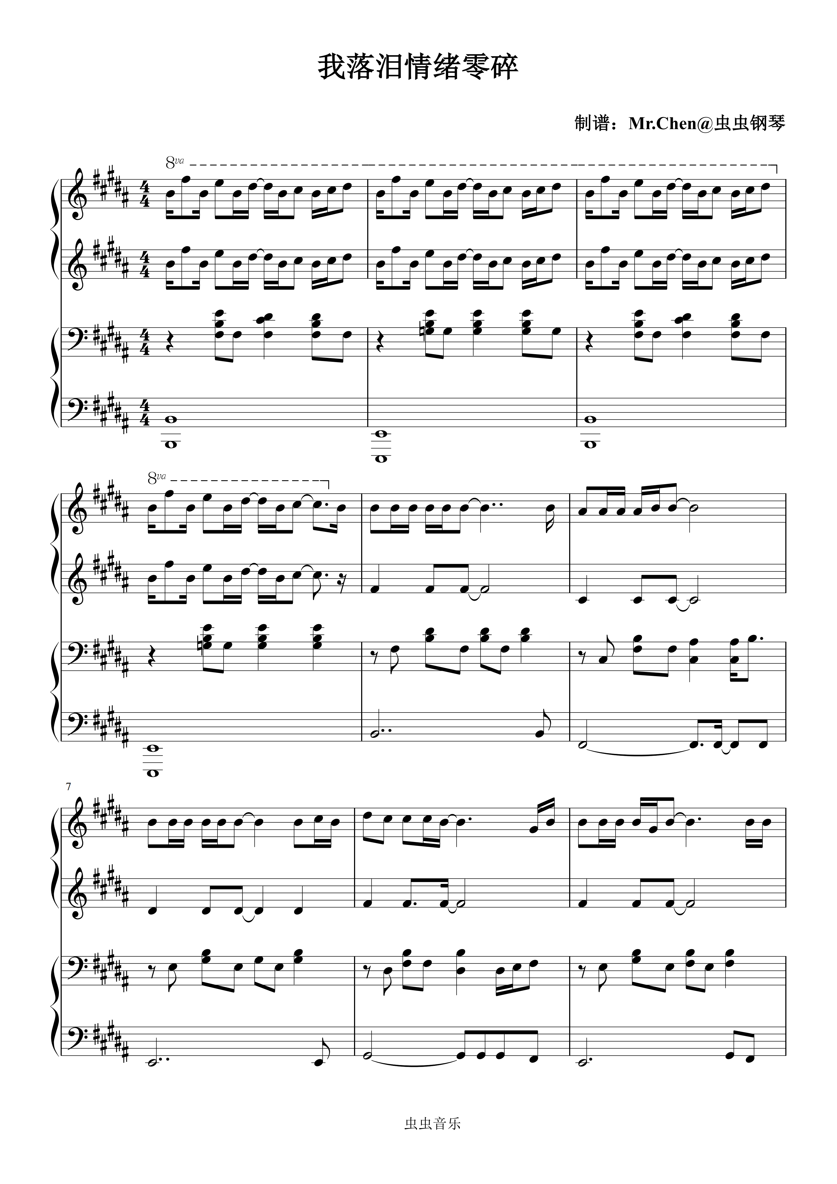 钢琴谱:我落泪情绪零碎 (四手联弹)- 周杰伦