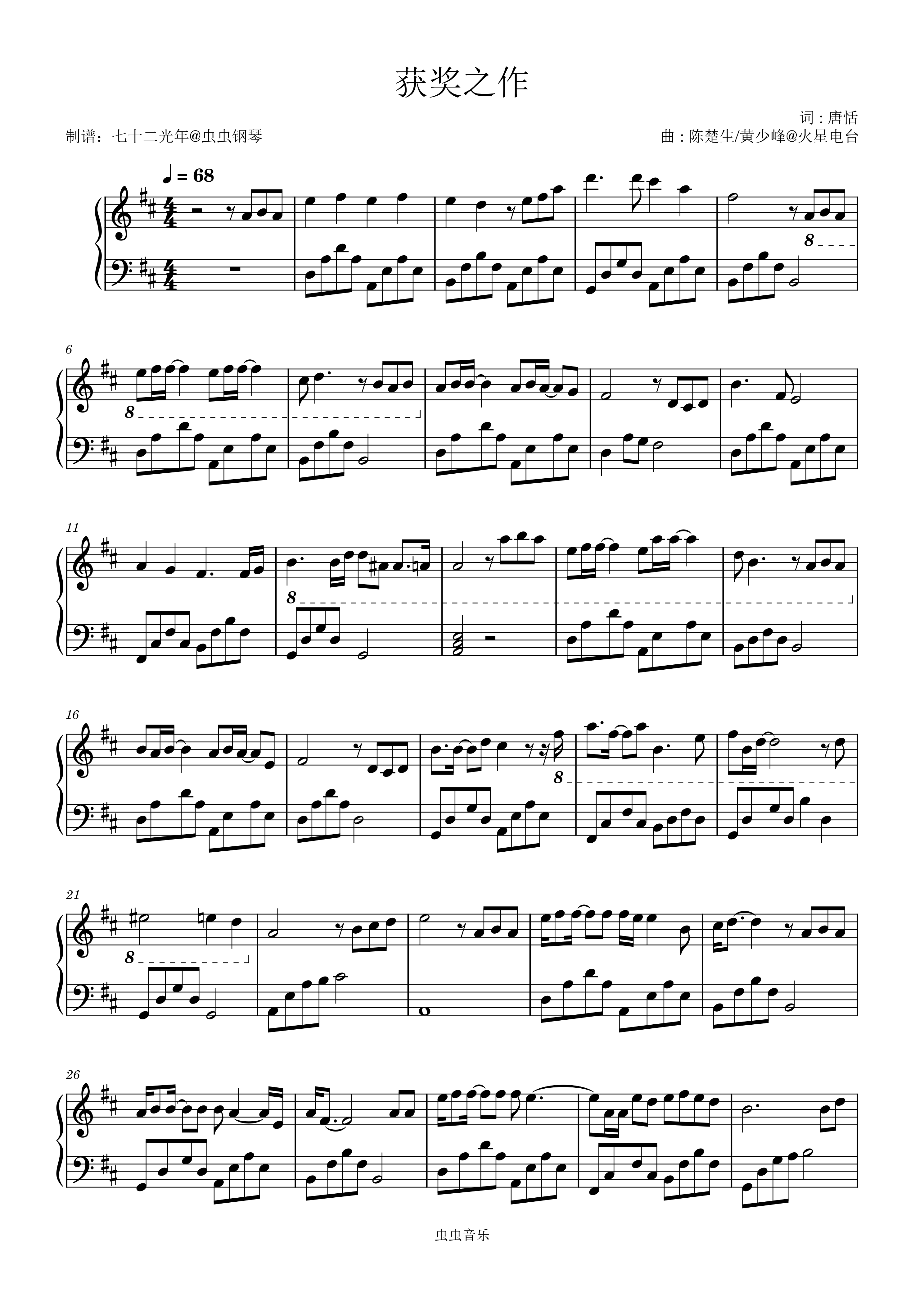 钢琴谱:获奖之作 简单完美版