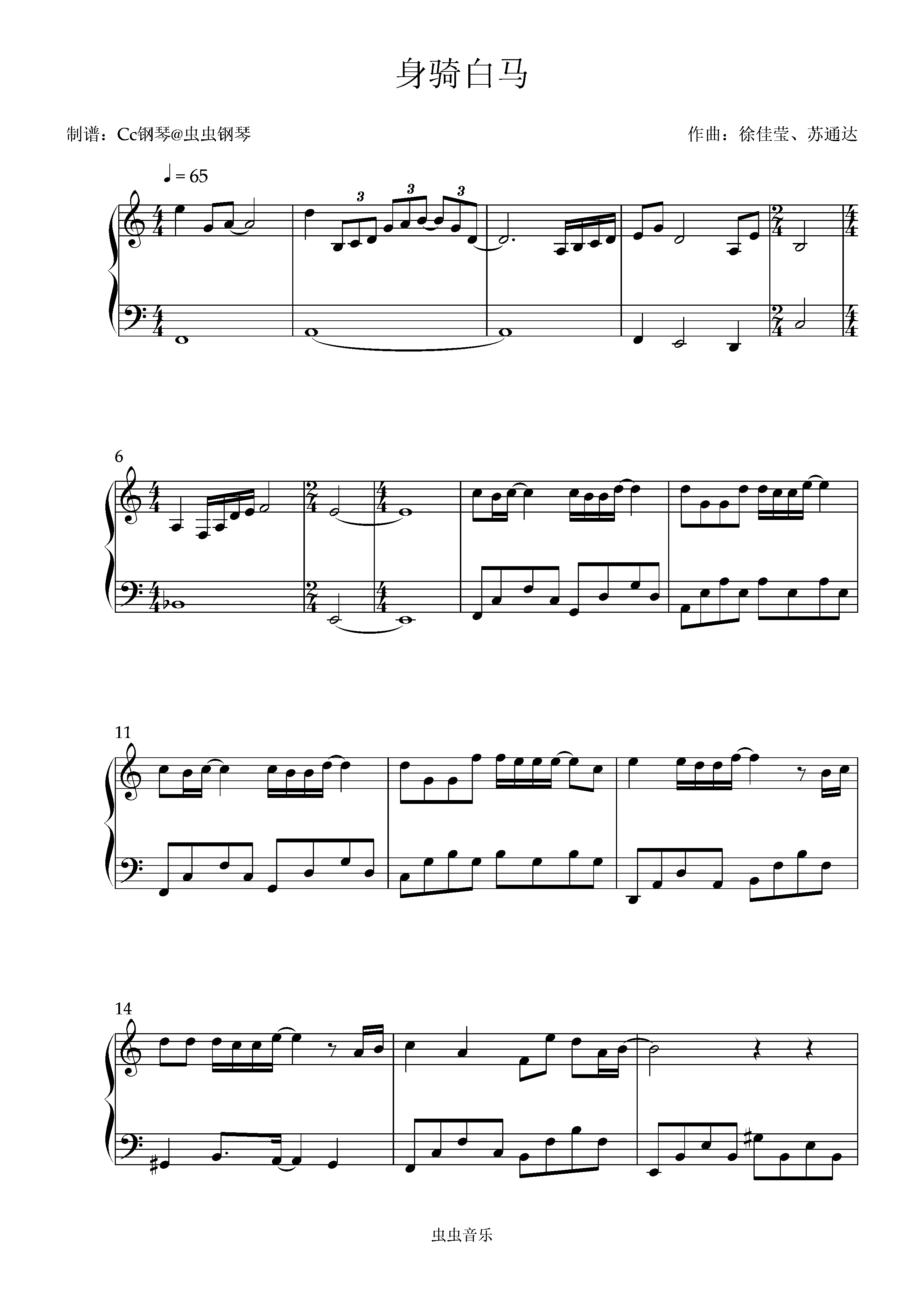 • 身骑白马钢琴简谱 F调 数字双手 徐佳莹