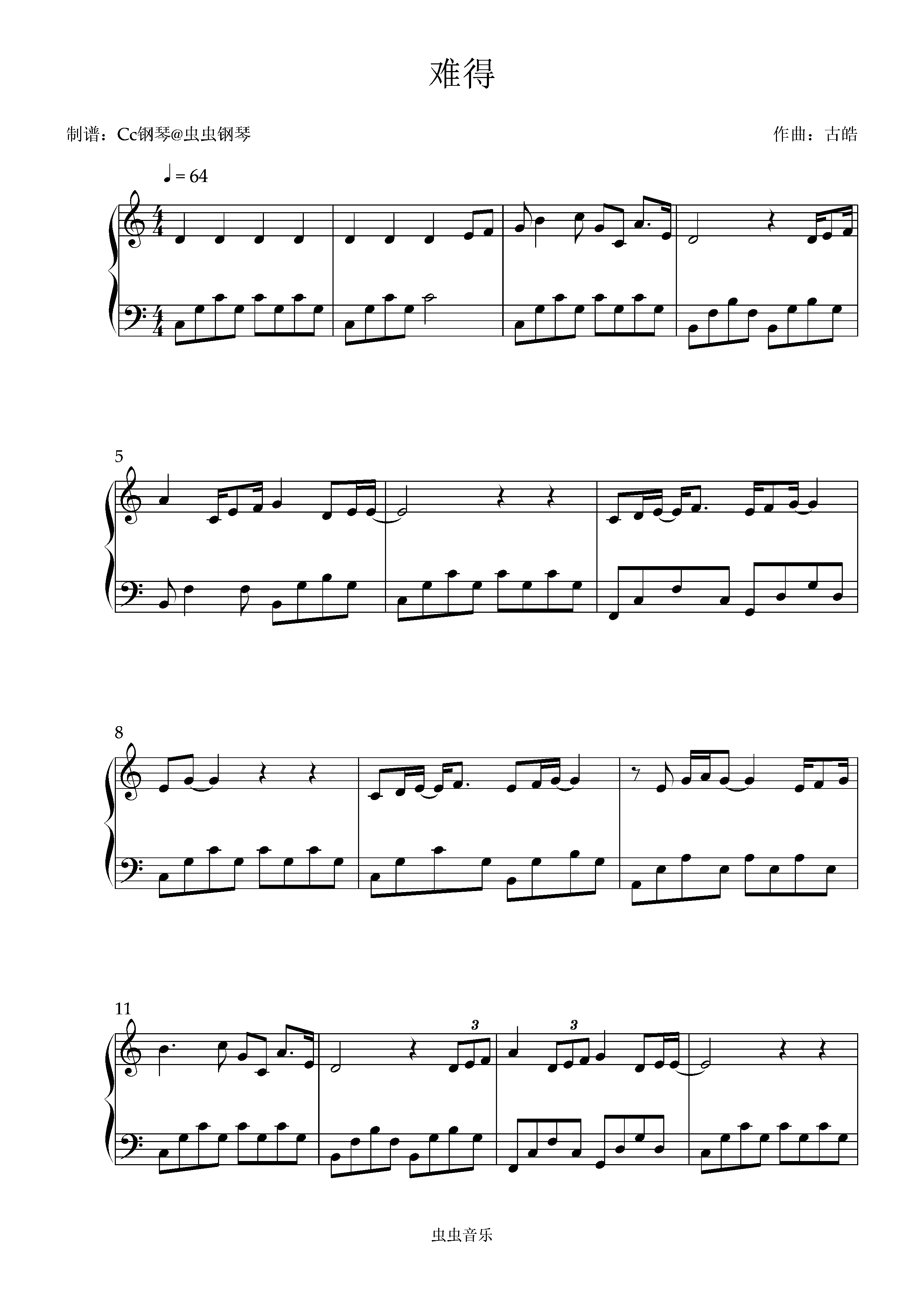 钢琴谱:难得 C调 好听易上手