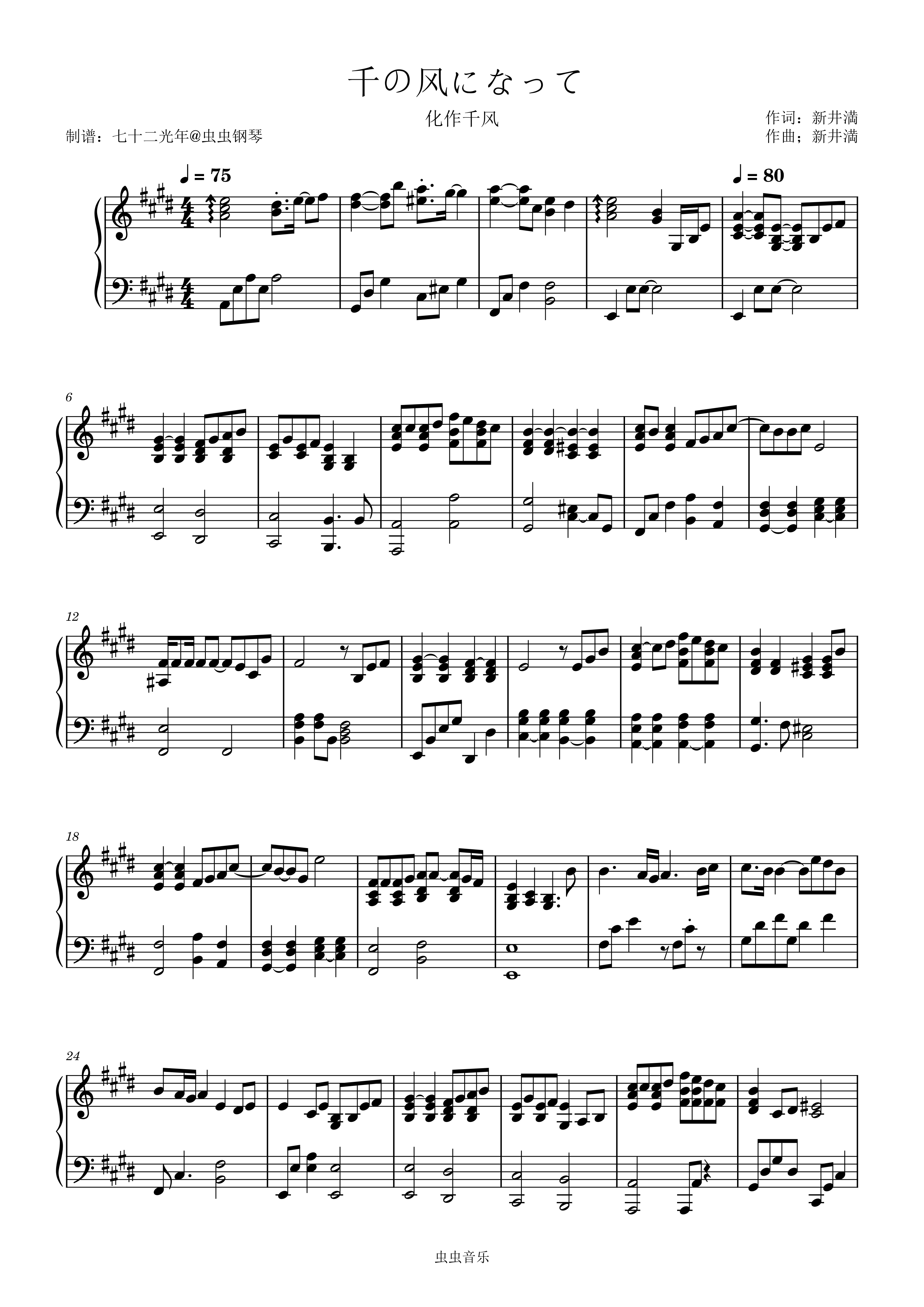 • 歌に形はないけれど钢琴简谱 E调 数字双手 doriko