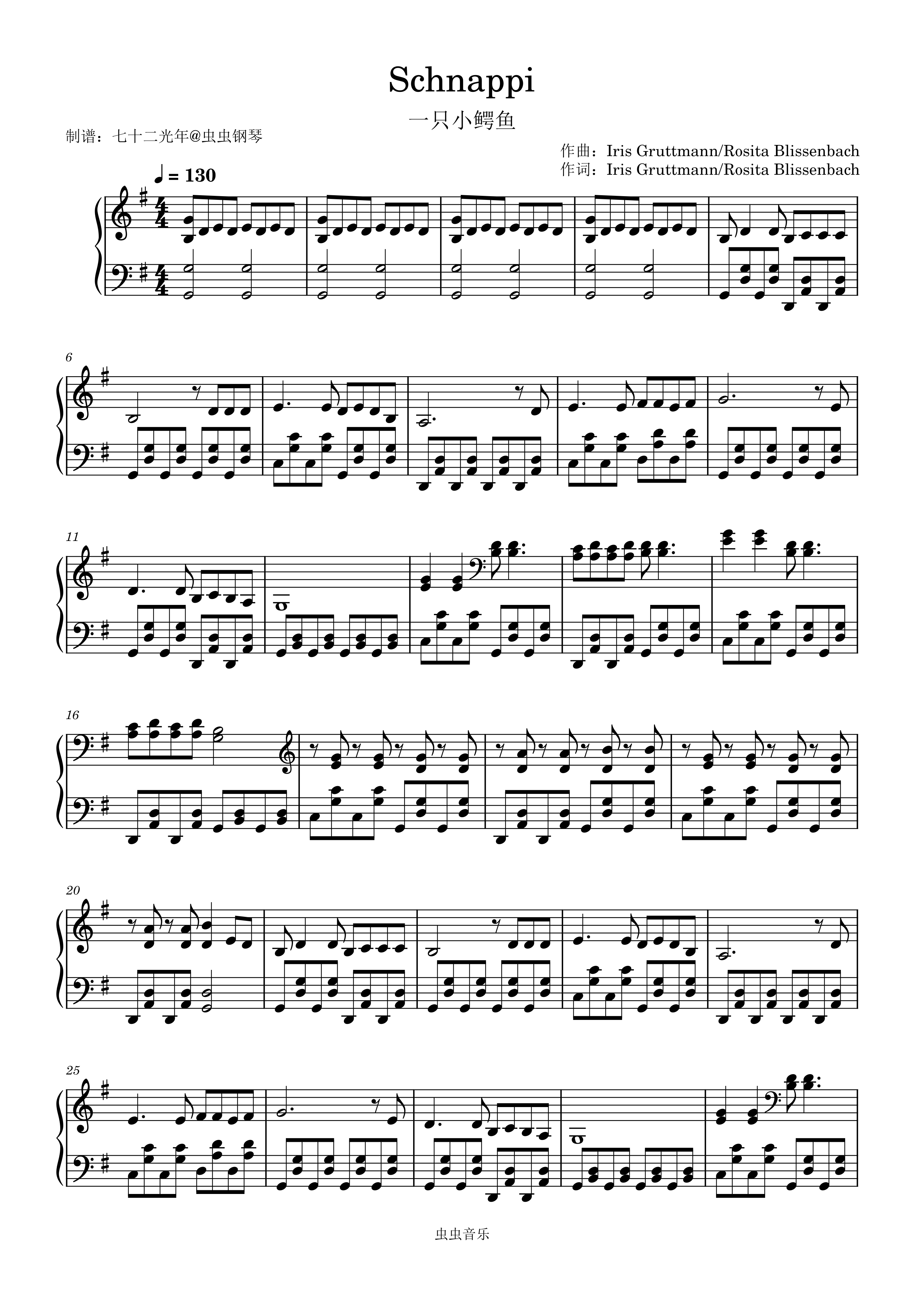 Schnappi钢琴简谱 数字双手 Iris Gruttmann