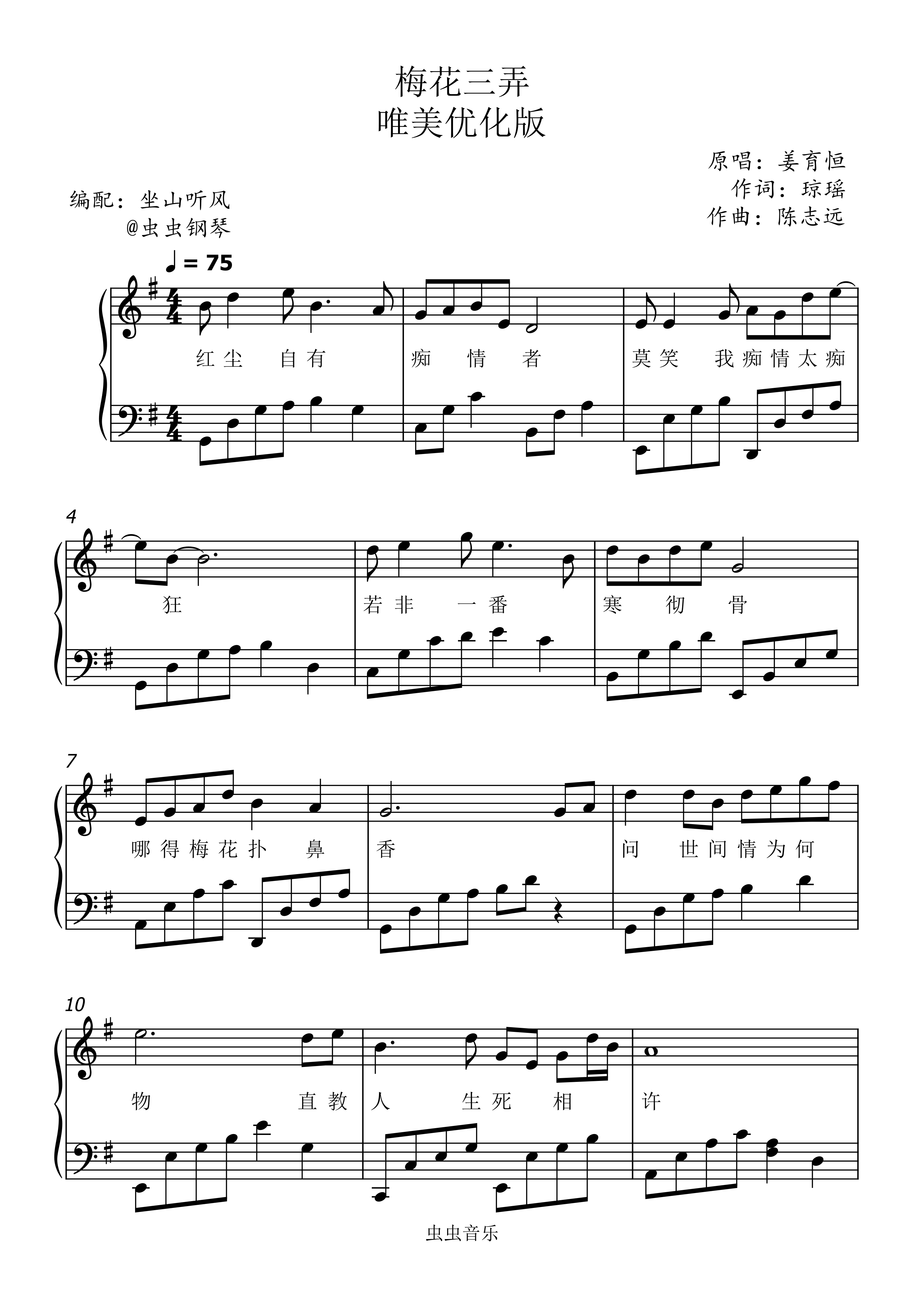 梅花三弄钢琴简谱 数字双手 琼瑶