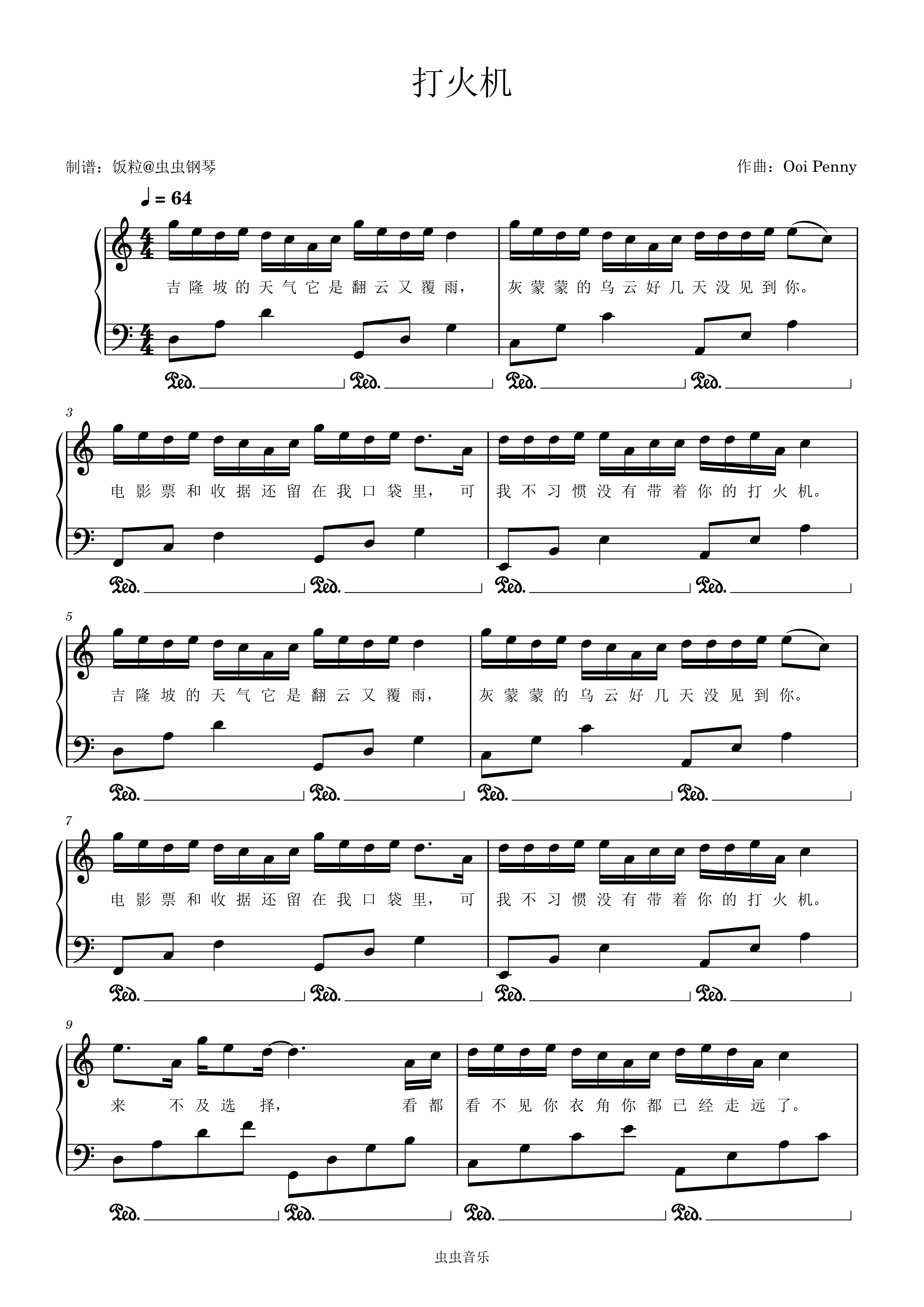 • 时光机钢琴简谱 C调 数字双手 方文山