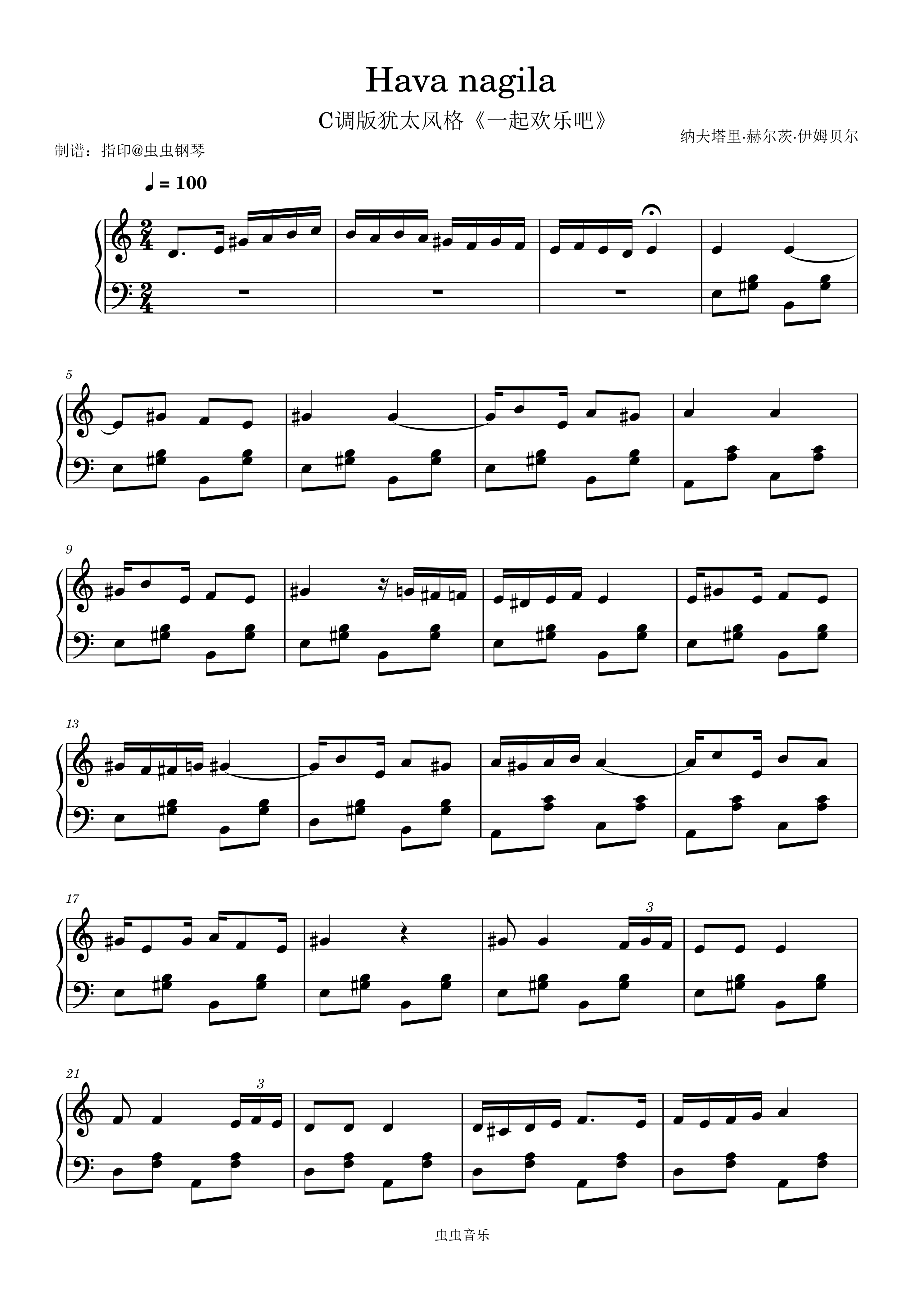 钢琴谱:C调版犹太民歌《Hava nagila》(一起欢乐吧)