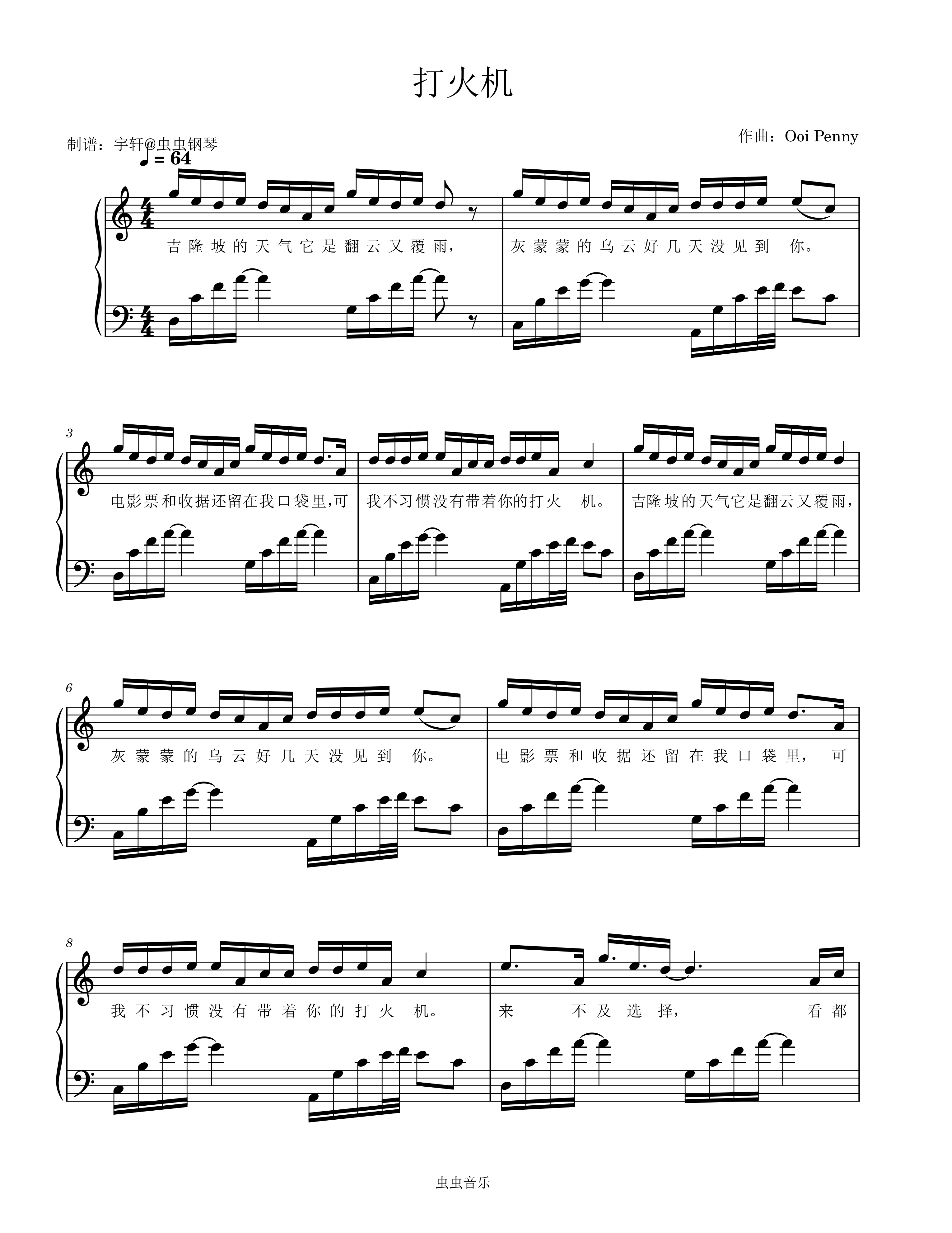 • 时光机钢琴简谱 C调 数字双手 方文山
