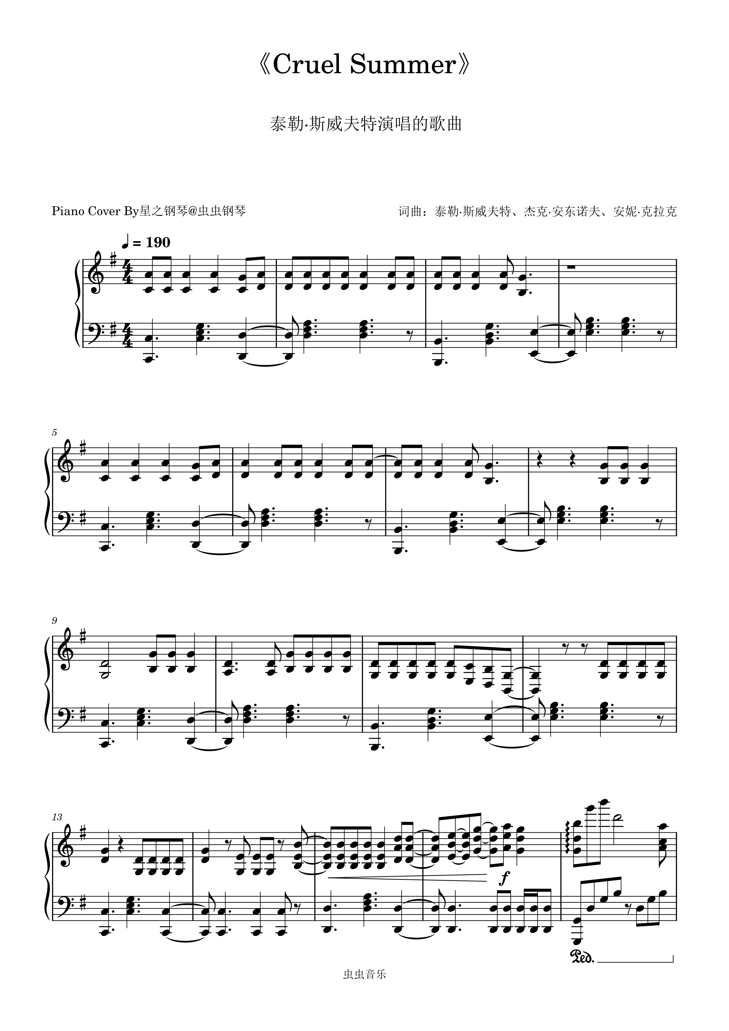 钢琴谱:【泰勒斯威夫特】《Cruel Summer》钢琴还原独奏版~星之钢琴~