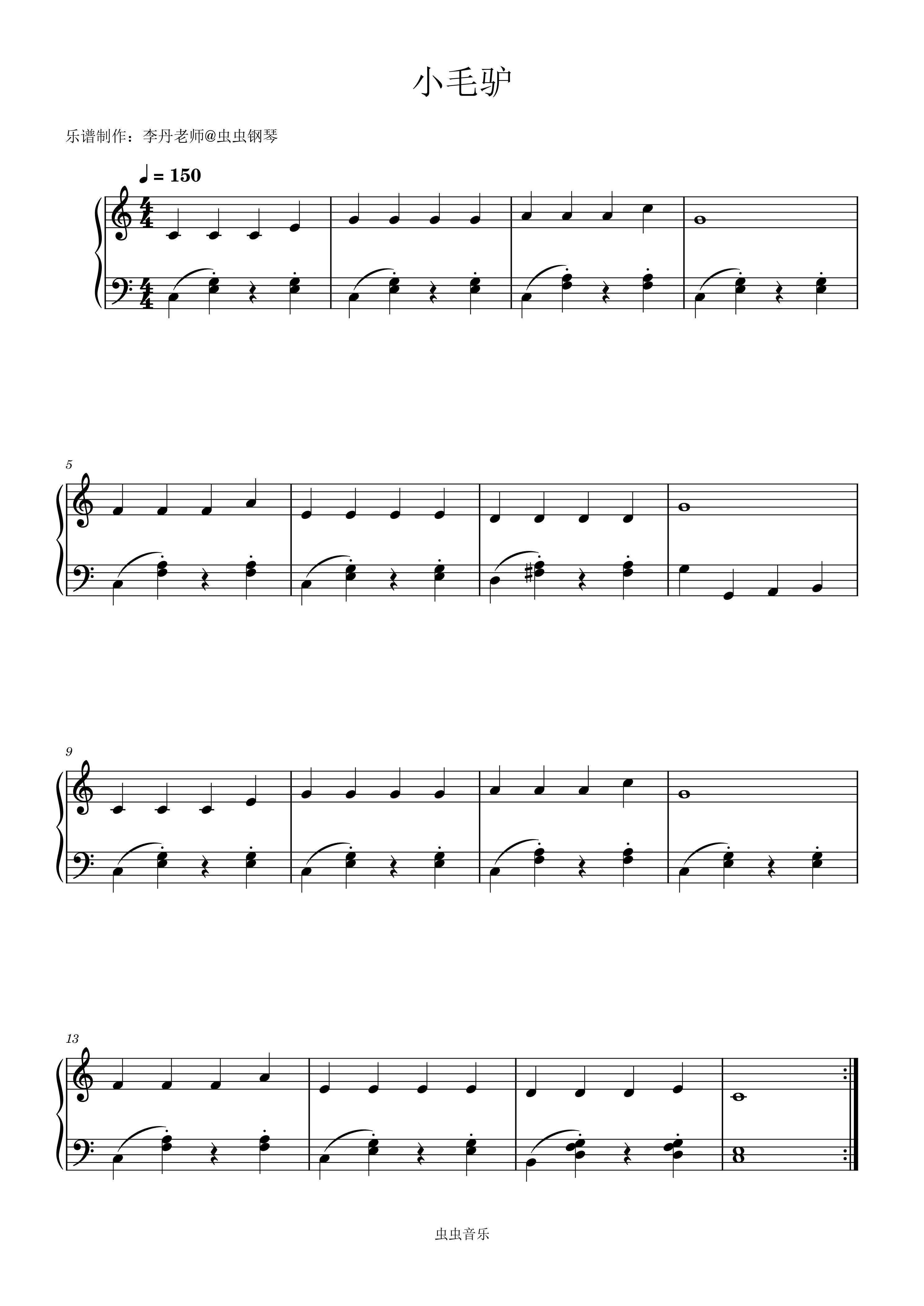 • 2级-自选-4. 阿凡提的小毛驴钢琴简谱 c调 数字双手