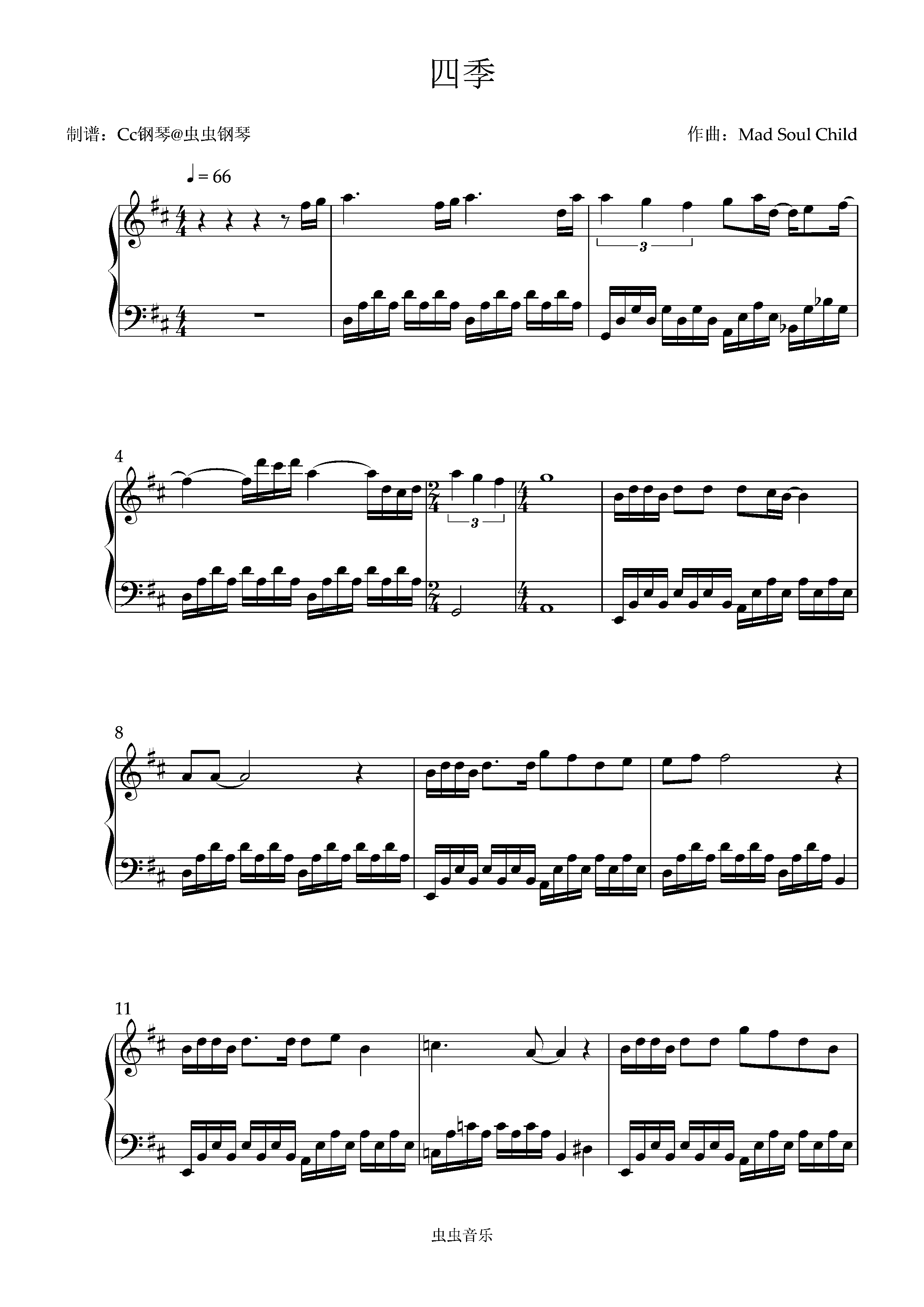 • 四季(第一声部)钢琴简谱 C调 数字双手