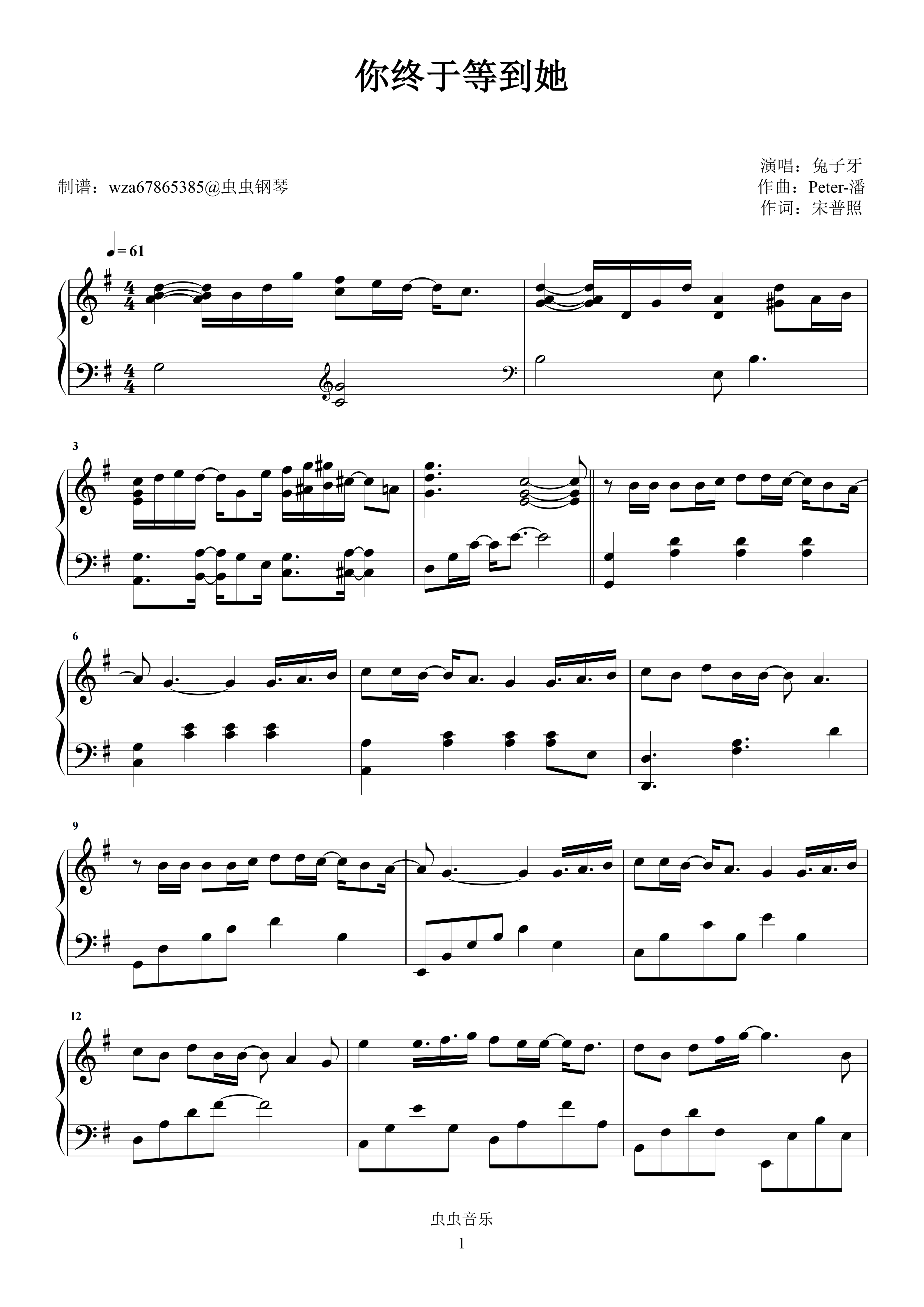 • 终于等到这一句钢琴简谱 G调 数字双手 林乔/刘恩汛/彭浩楷/木兰花