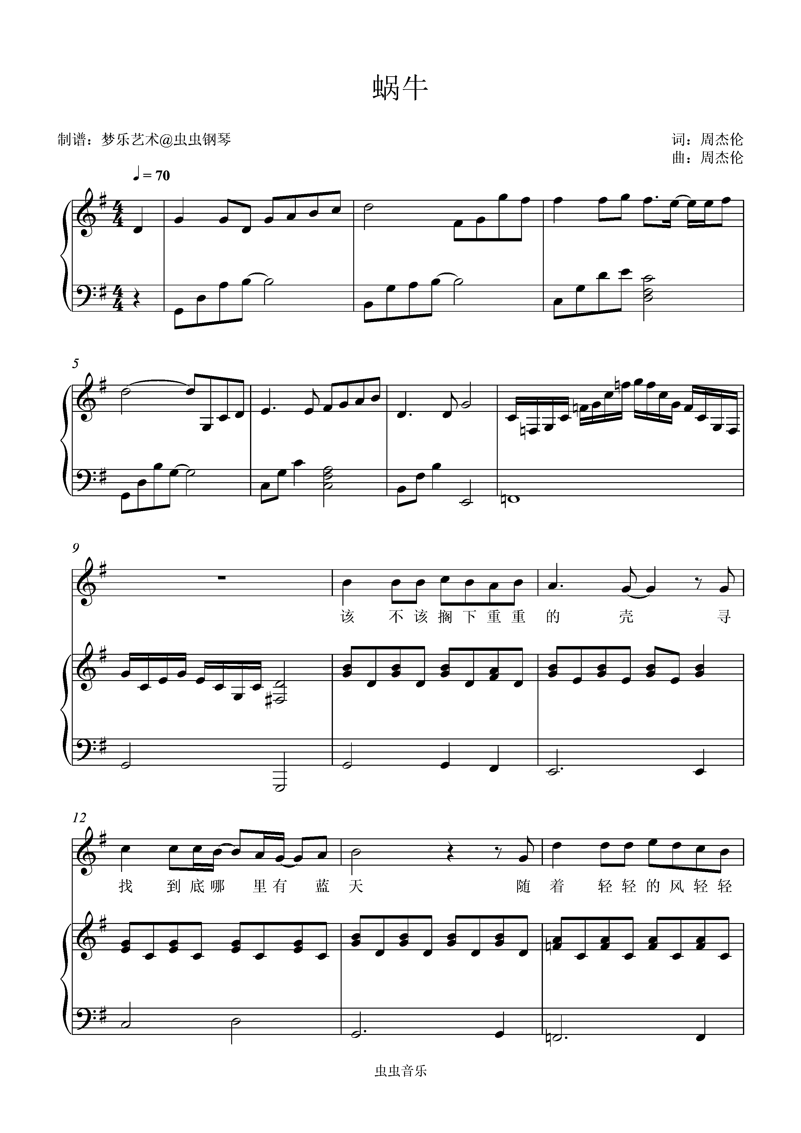 • 蜗牛钢琴简谱 G调 数字双手 周杰伦