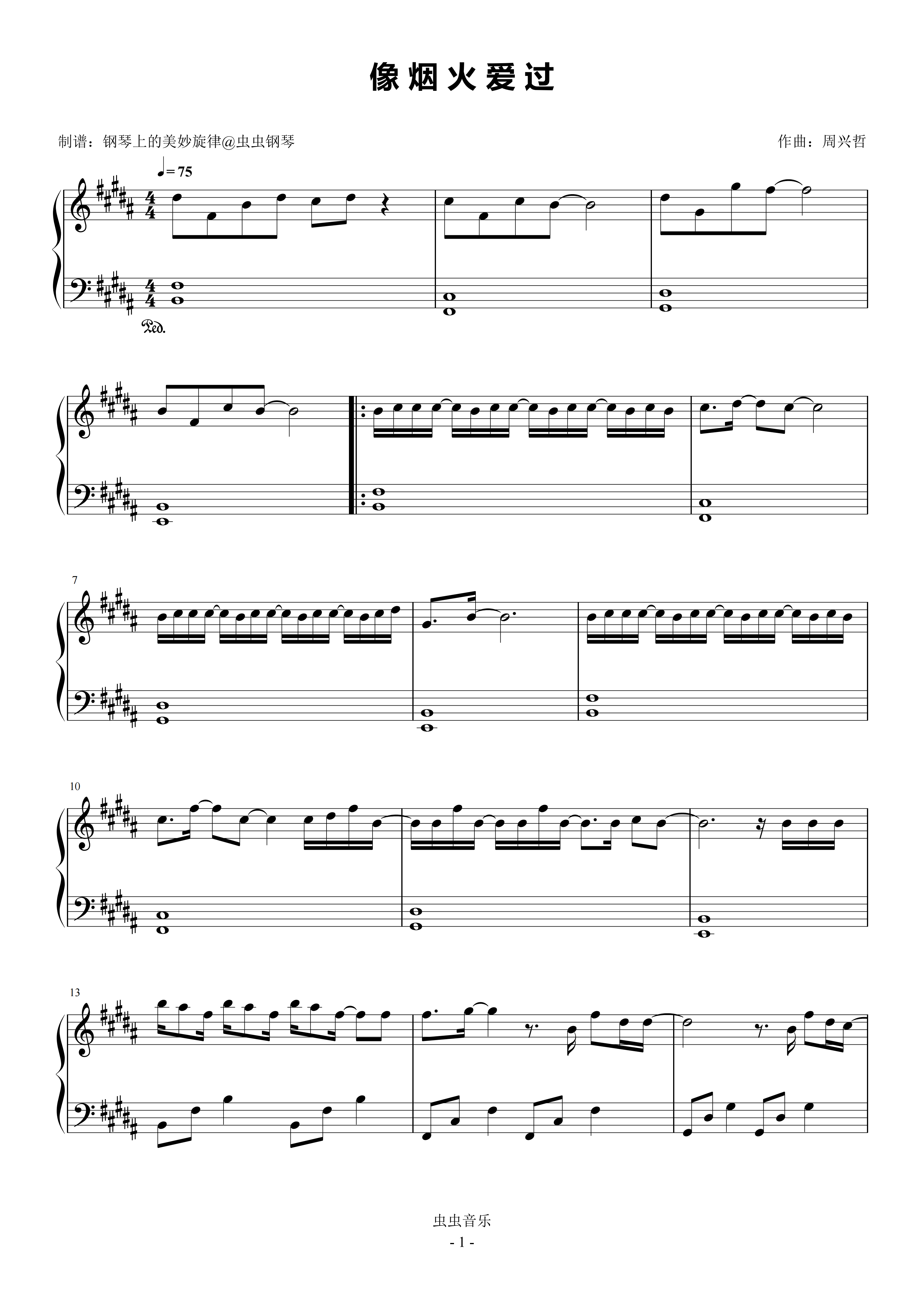 • 错过的烟火钢琴简谱 Bb调 数字双手 方文山