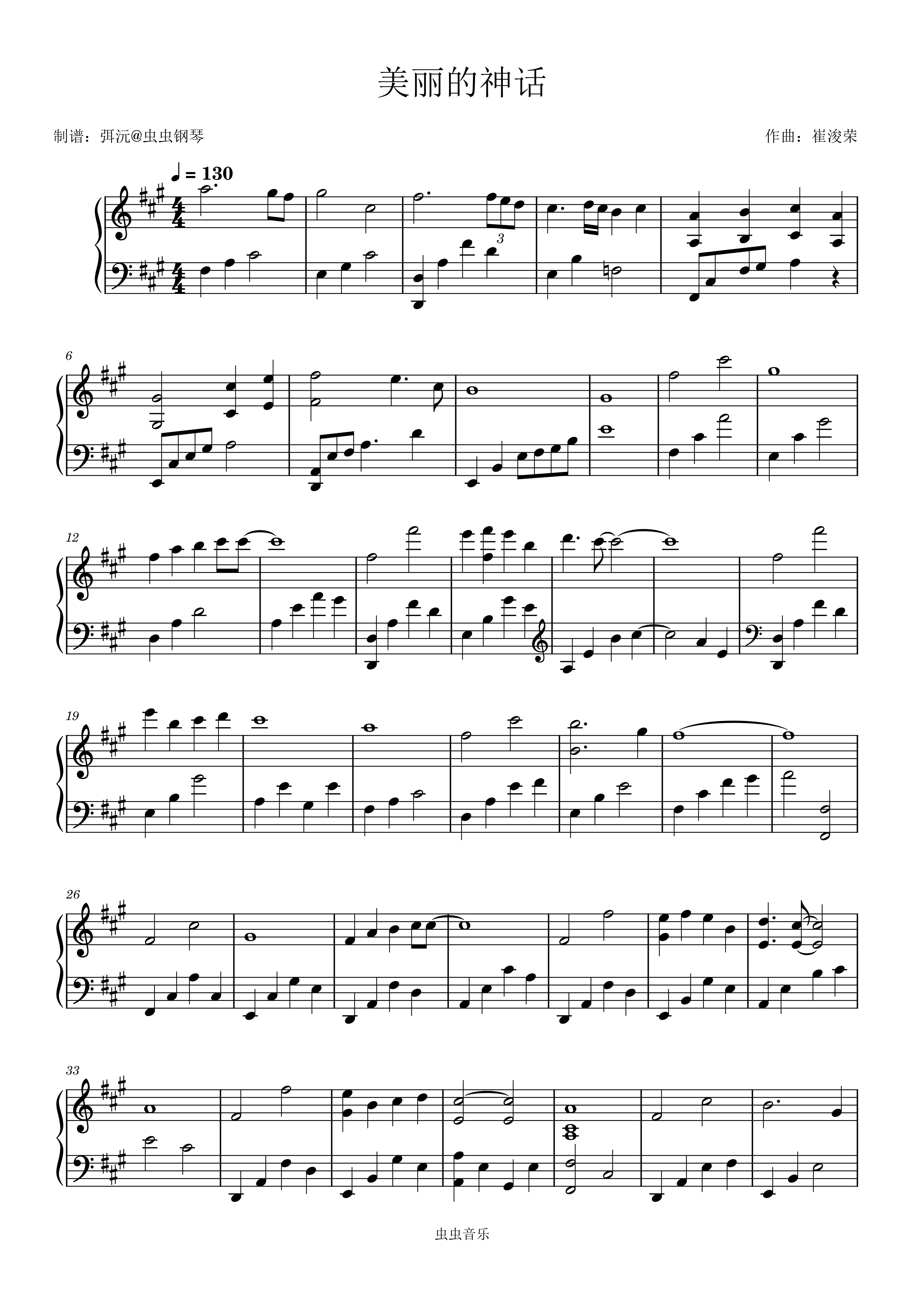 钢琴谱:美丽的神话——唯美原版
