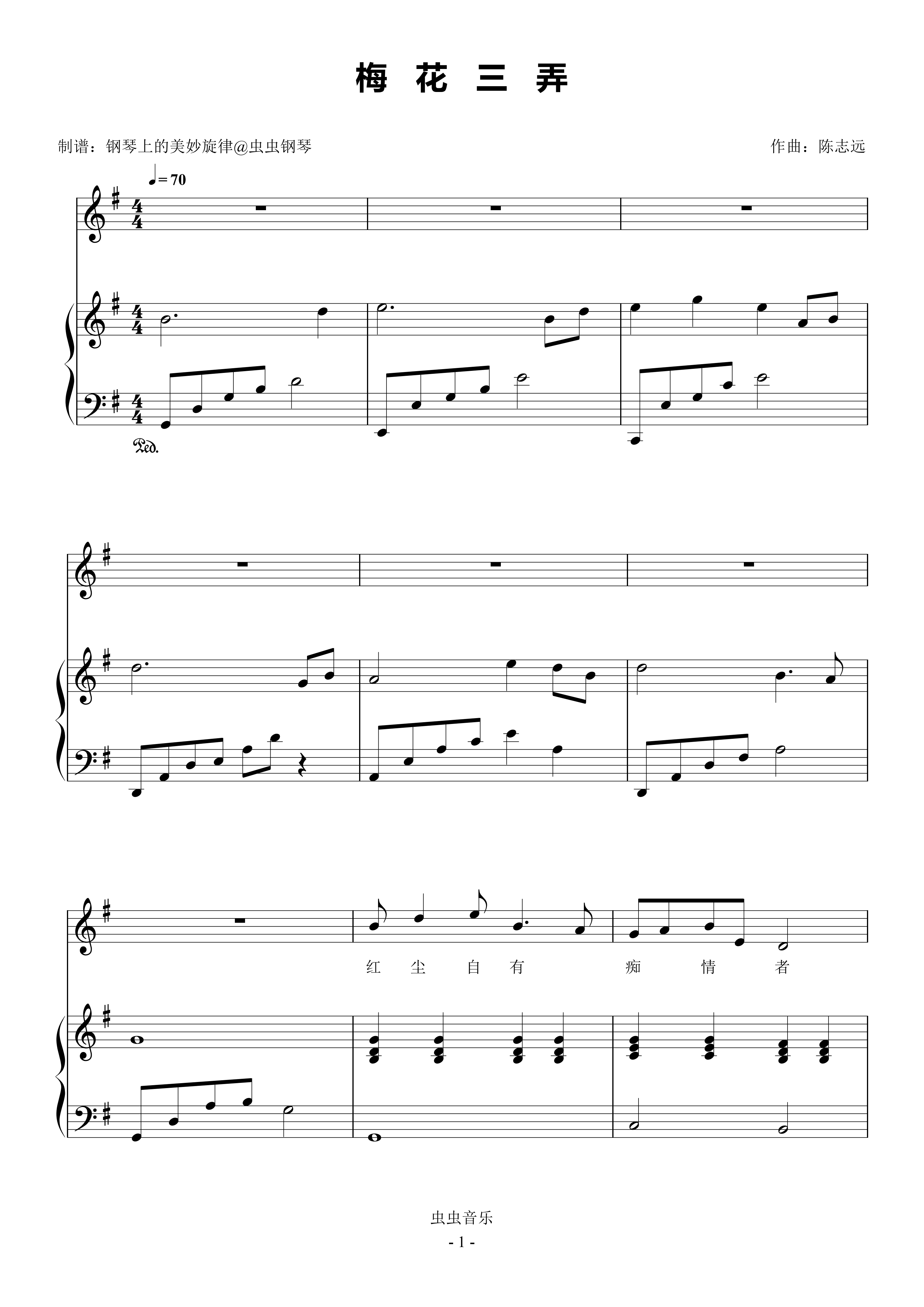 钢琴谱:梅花三弄 简易钢琴弹唱伴奏 带歌词 姜育恒 流行经典