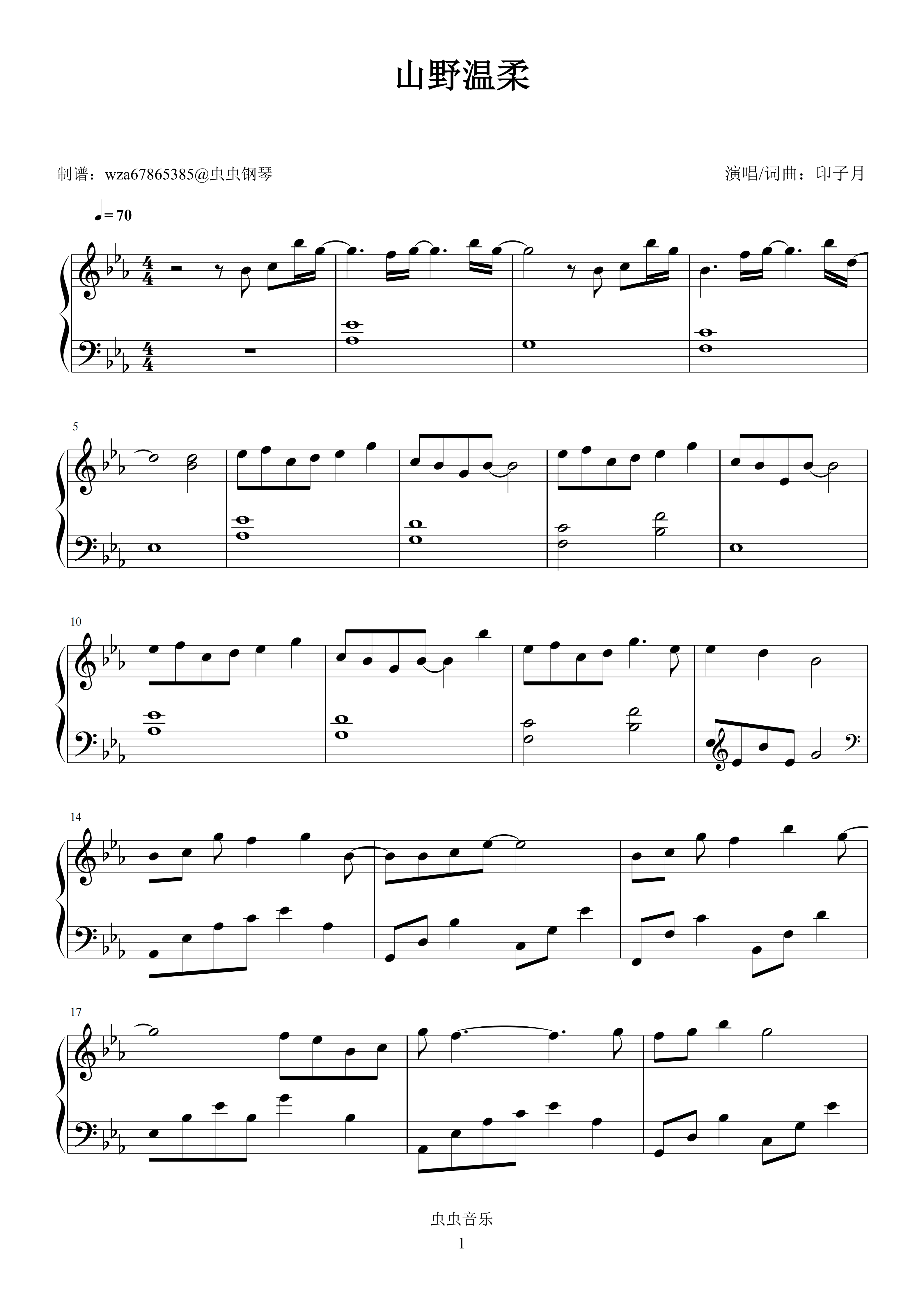 钢琴谱:山野温柔
