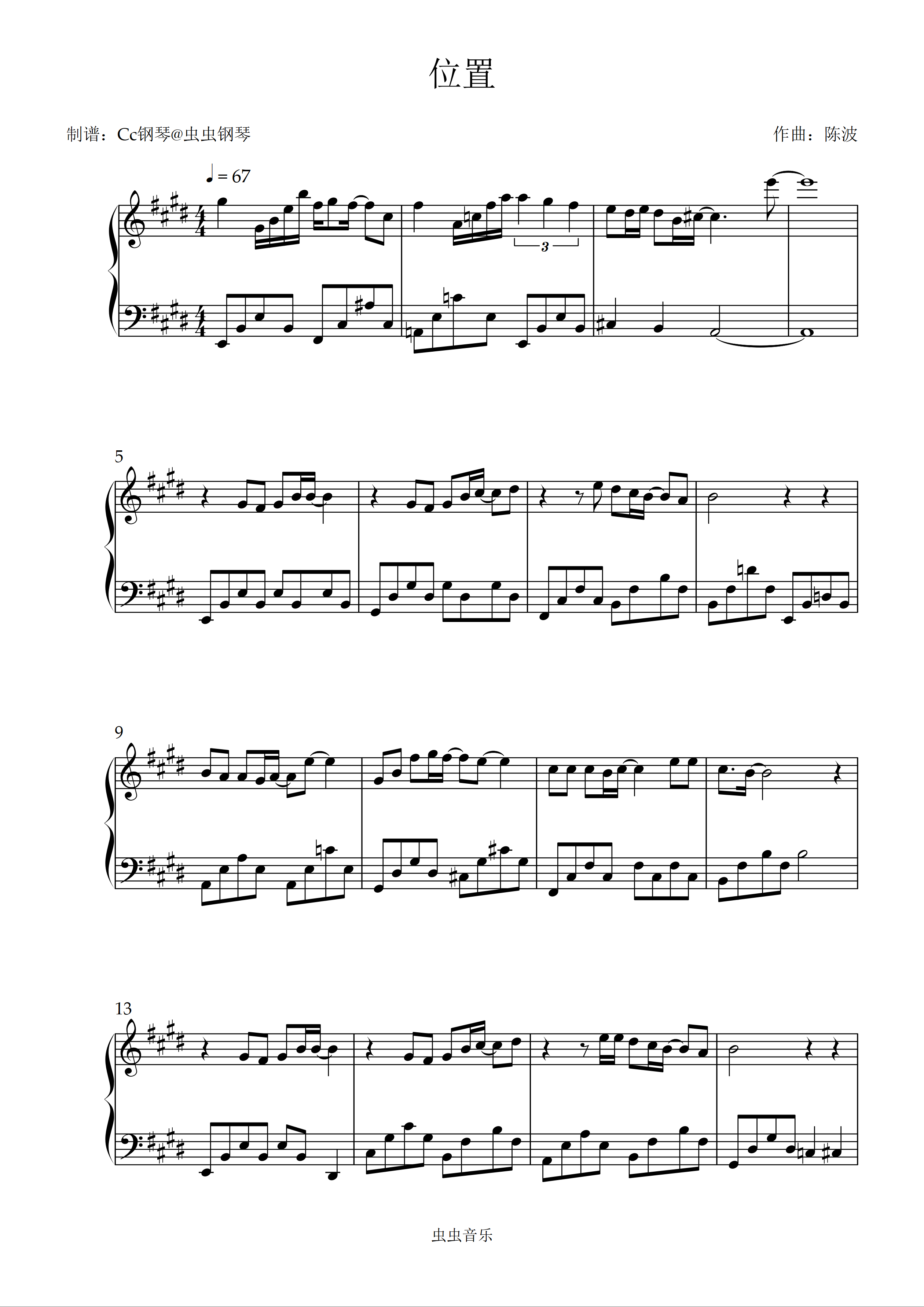 • 처음 그 자리에钢琴简谱 E调 数字双手 한성호