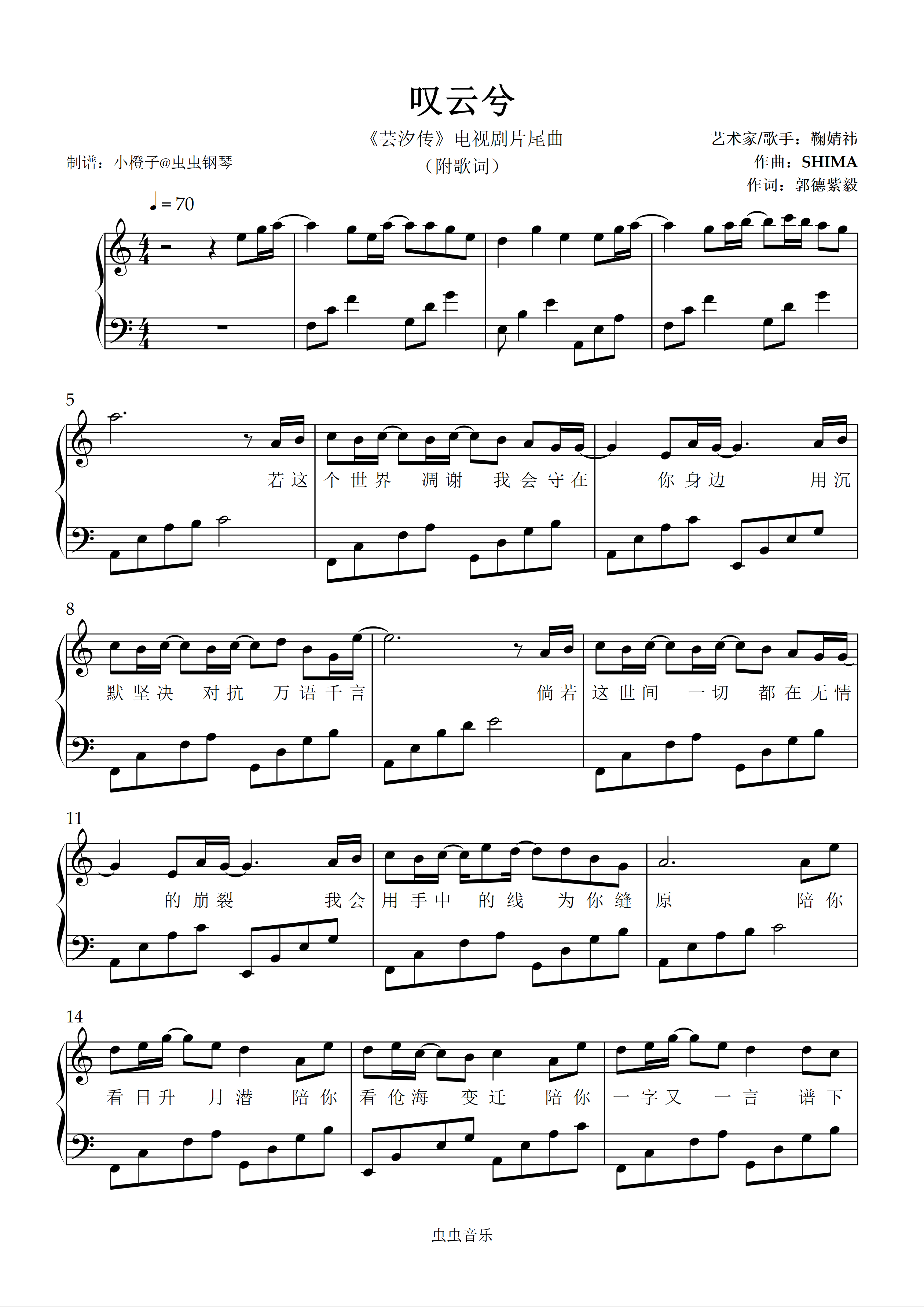 钢琴谱:叹云兮(C调 附歌词)-鞠婧祎
