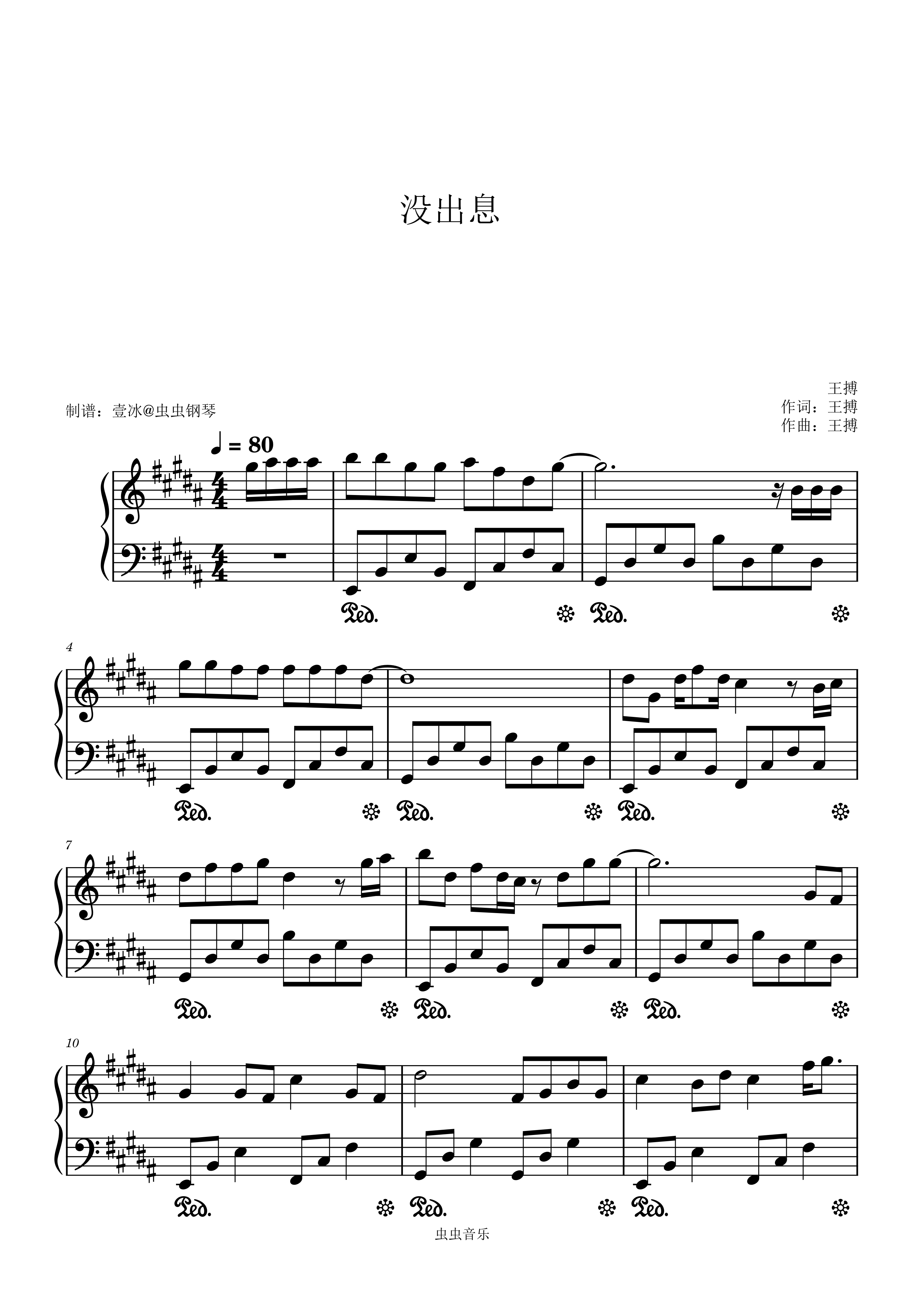 • 可惜没如果钢琴简谱 a调 数字双手 林夕
