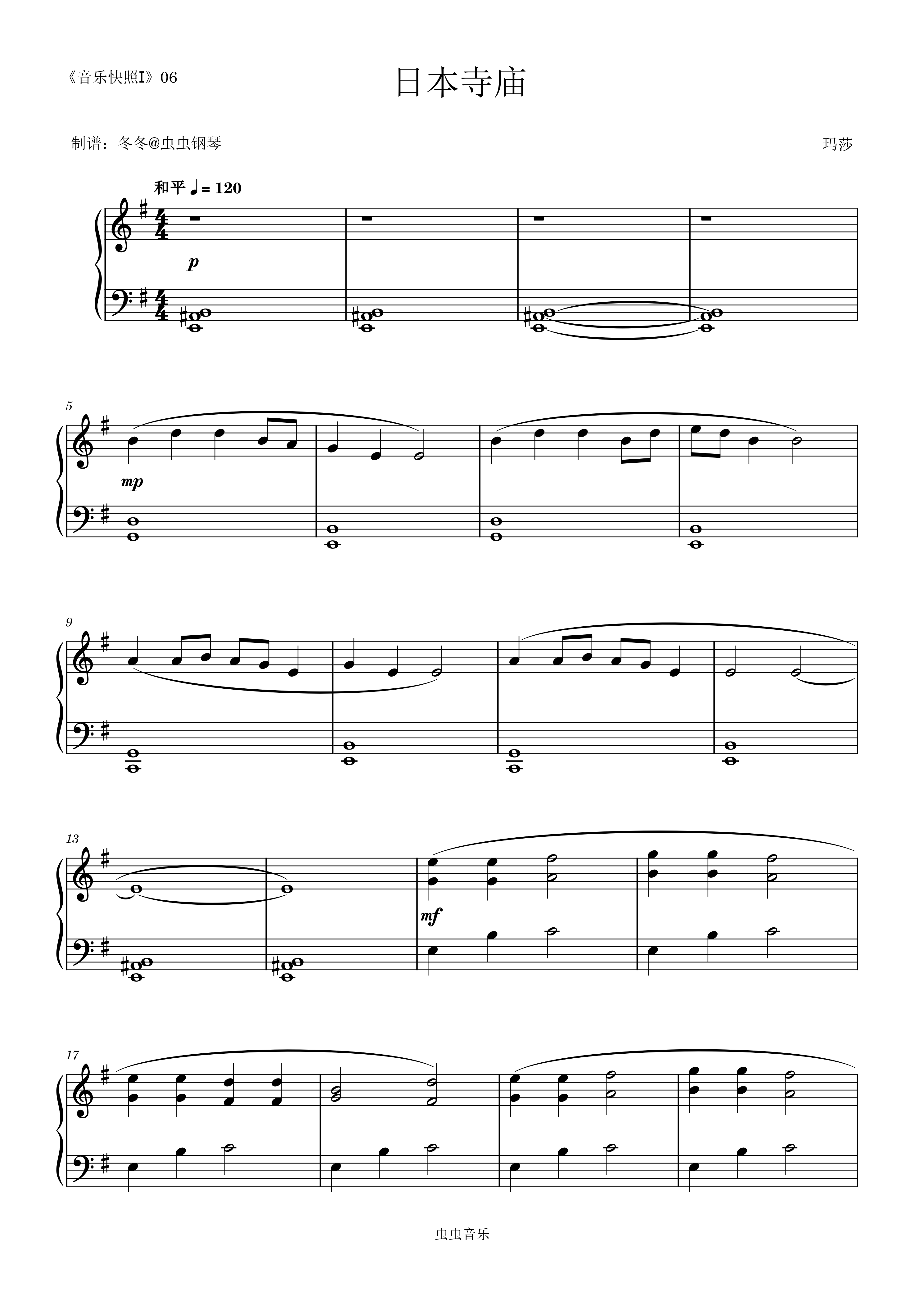 • 82.寺庙的钟声钢琴简谱 c调 数字双手