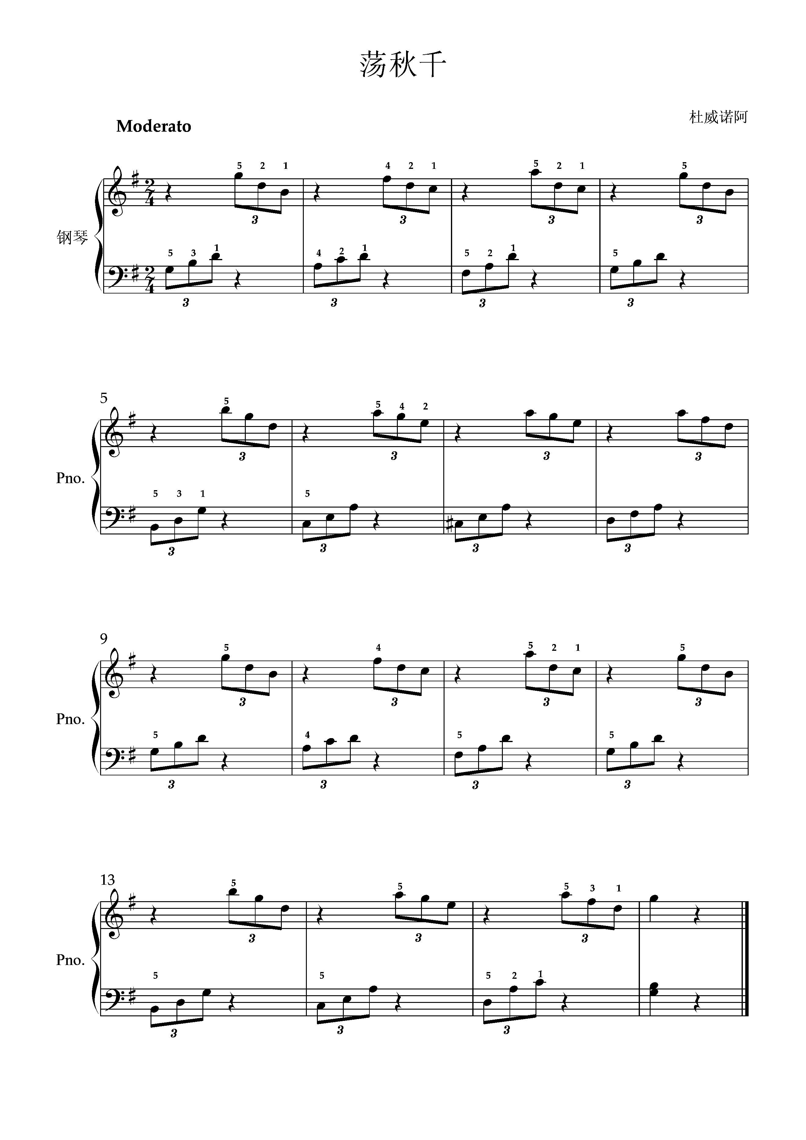 荡秋千钢琴简谱 数字双手