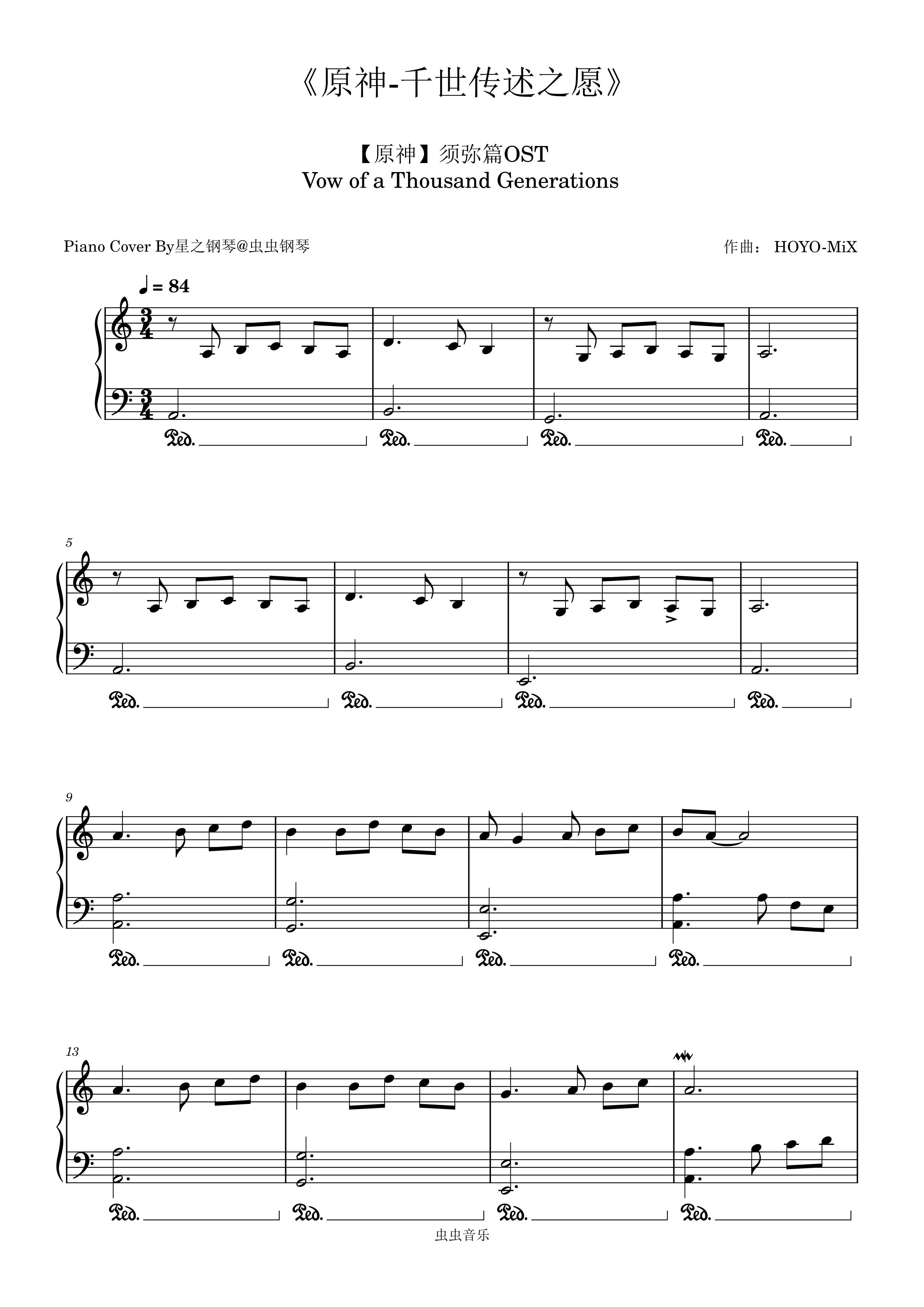 钢琴谱:【原神】须弥OST《千世传述之愿》钢琴还原版~星之钢琴~