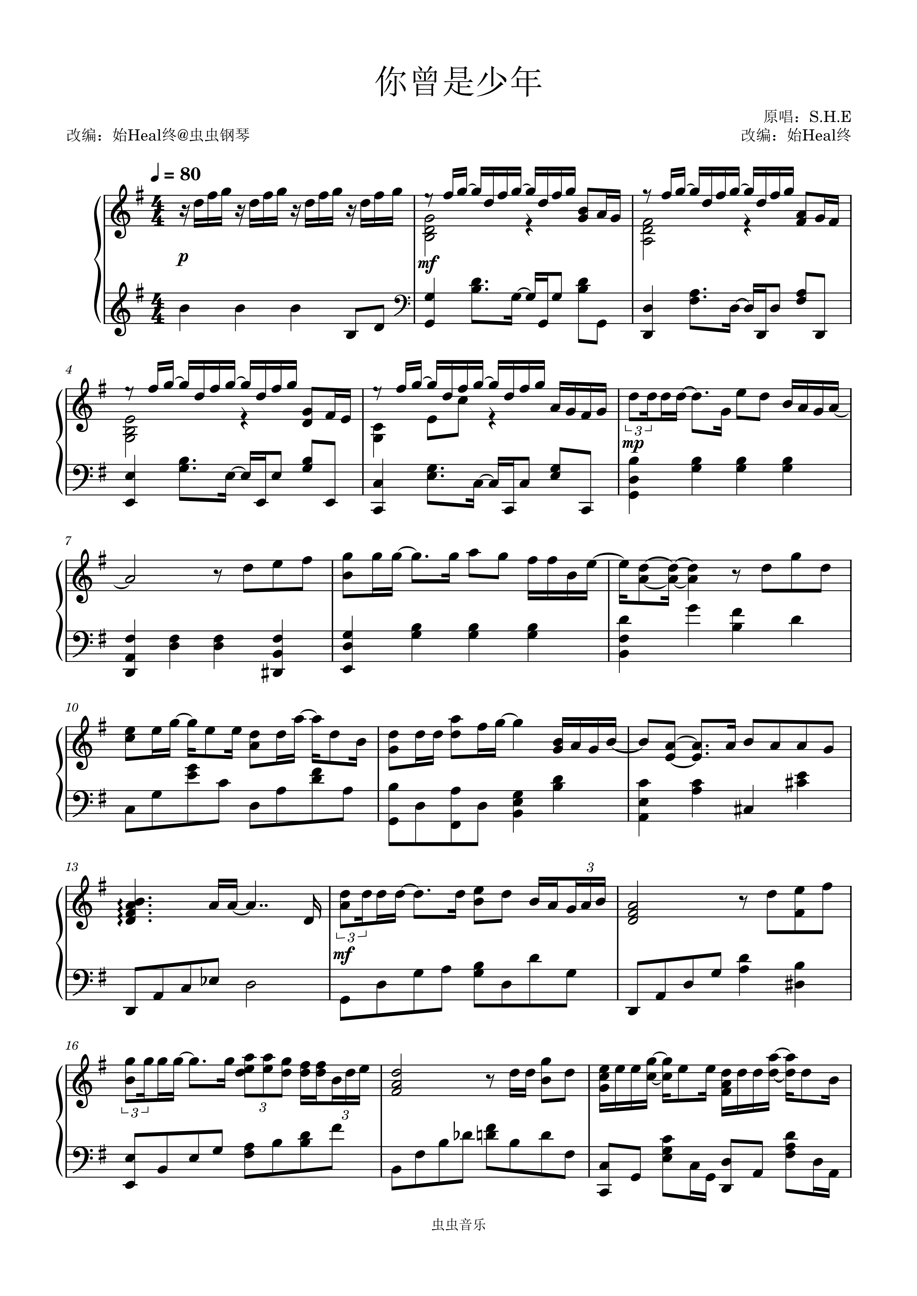• 你曾是少年钢琴简谱 G调 数字双手 肖洋